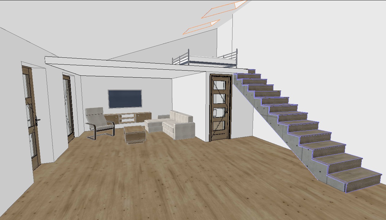 industrial loft interior design open plan two story apartment with a mezzanine bedroom navy blue accent walls and matching blue velvet sectional sofa exposed white brick walls rustic dark wood ceiling beams and light oak hardwood flooring a sleek black metal railing for the loft and staircase with wooden treads warm ambient lighting natural light from large windows minimalist wooden dining table with black chairs and a cozy living area with a plush grey rug high quality photorealistic architectural render 8k resolution cinematic lighting serene and sophisticated atmosphere