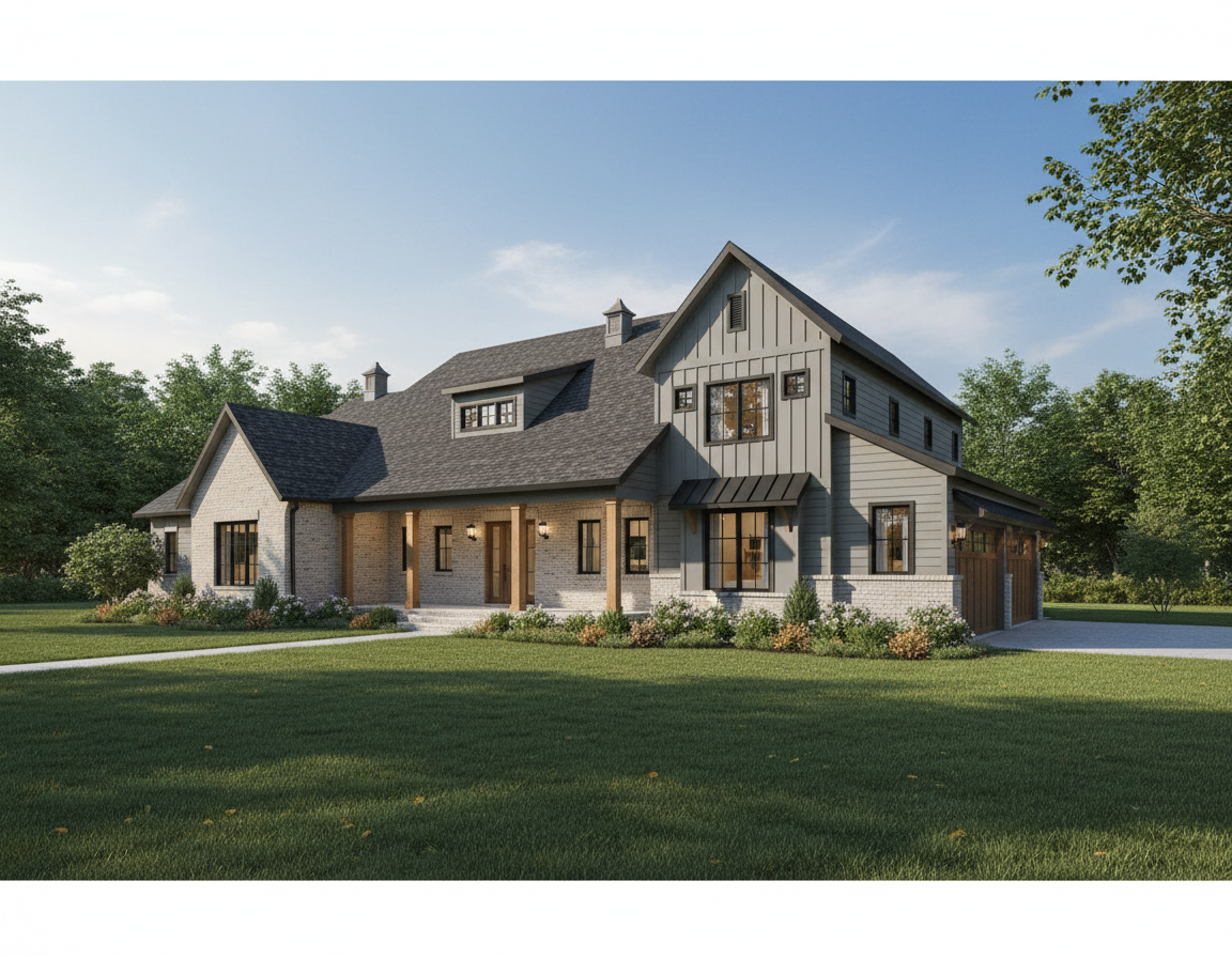 charcoal slate shingles light gray lap siding brick skirt