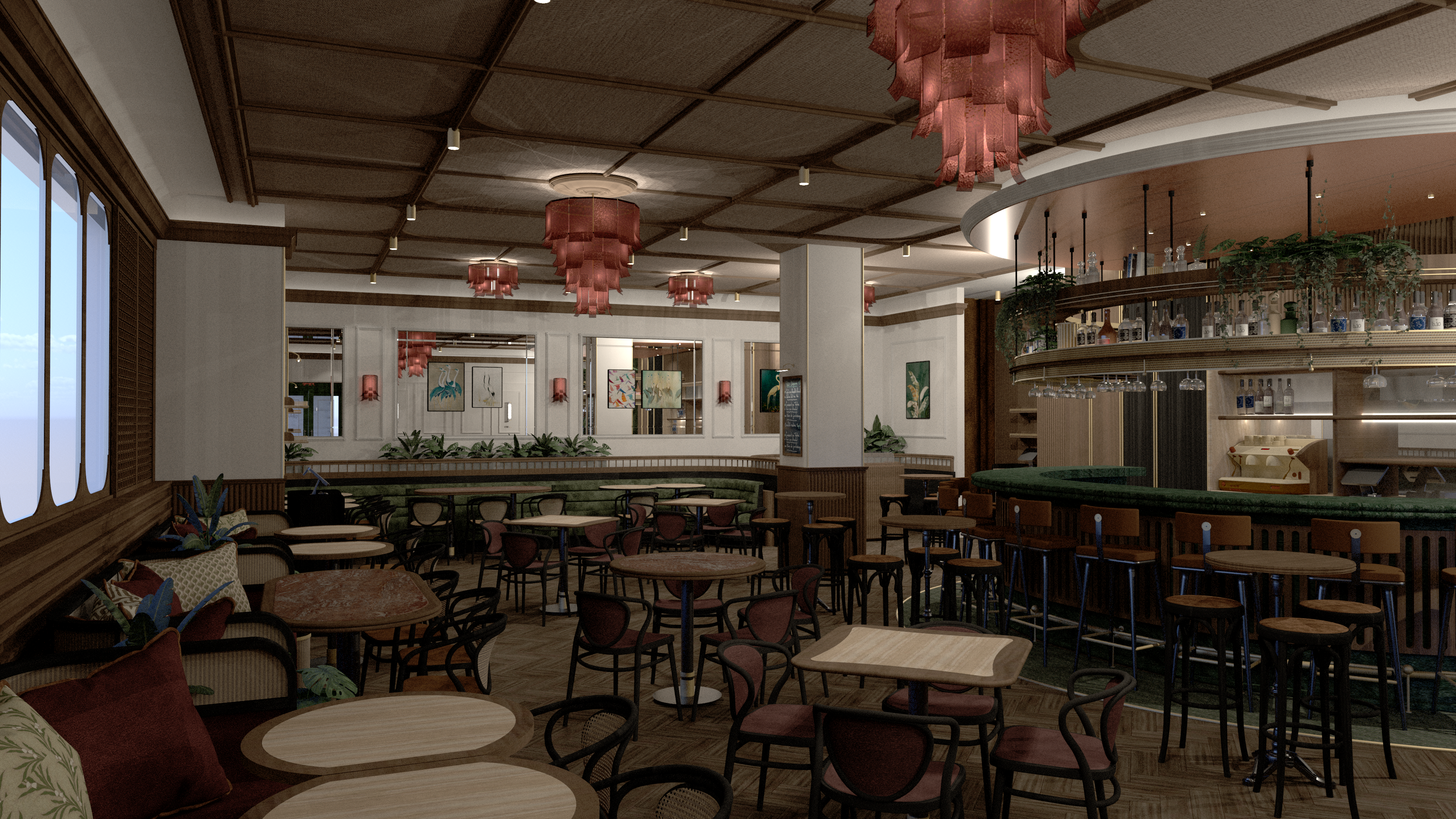 keep indirect lighjting in circular ceiling make the mood night mood