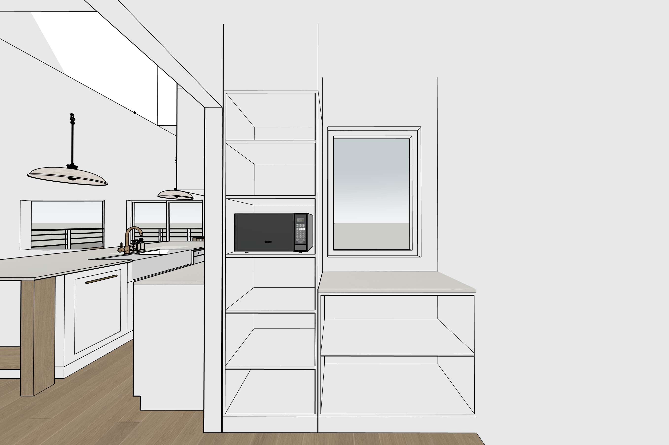 all cabinetry to be white shaker style pendant lights are these https lightingcollective com au products traditional ceramic pendant assorted size stone bench top to be https www caesarstone com au colours 4001 fresh concrete add some landscaping out the window timber finishes to be light o outdoor balcony rail to be white