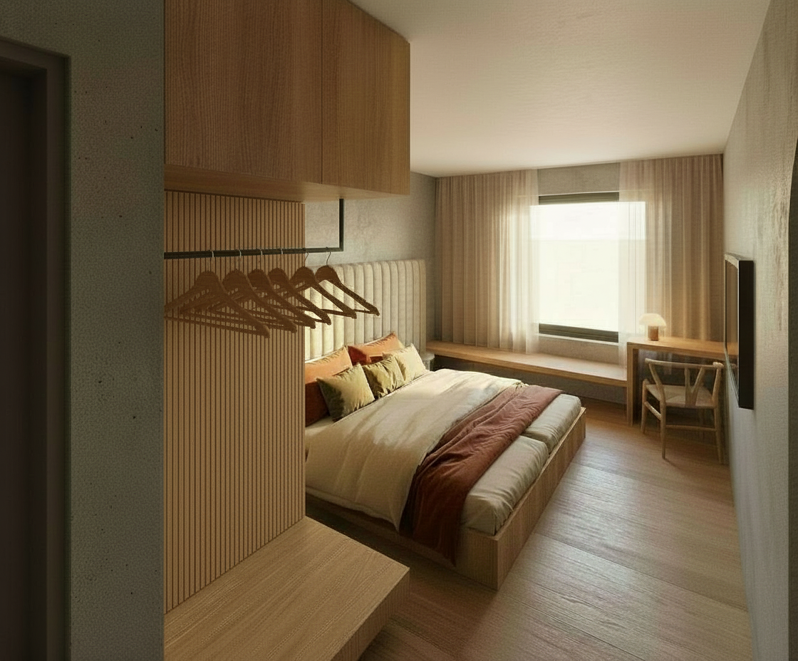 beige ceiling color leather headboard in light color