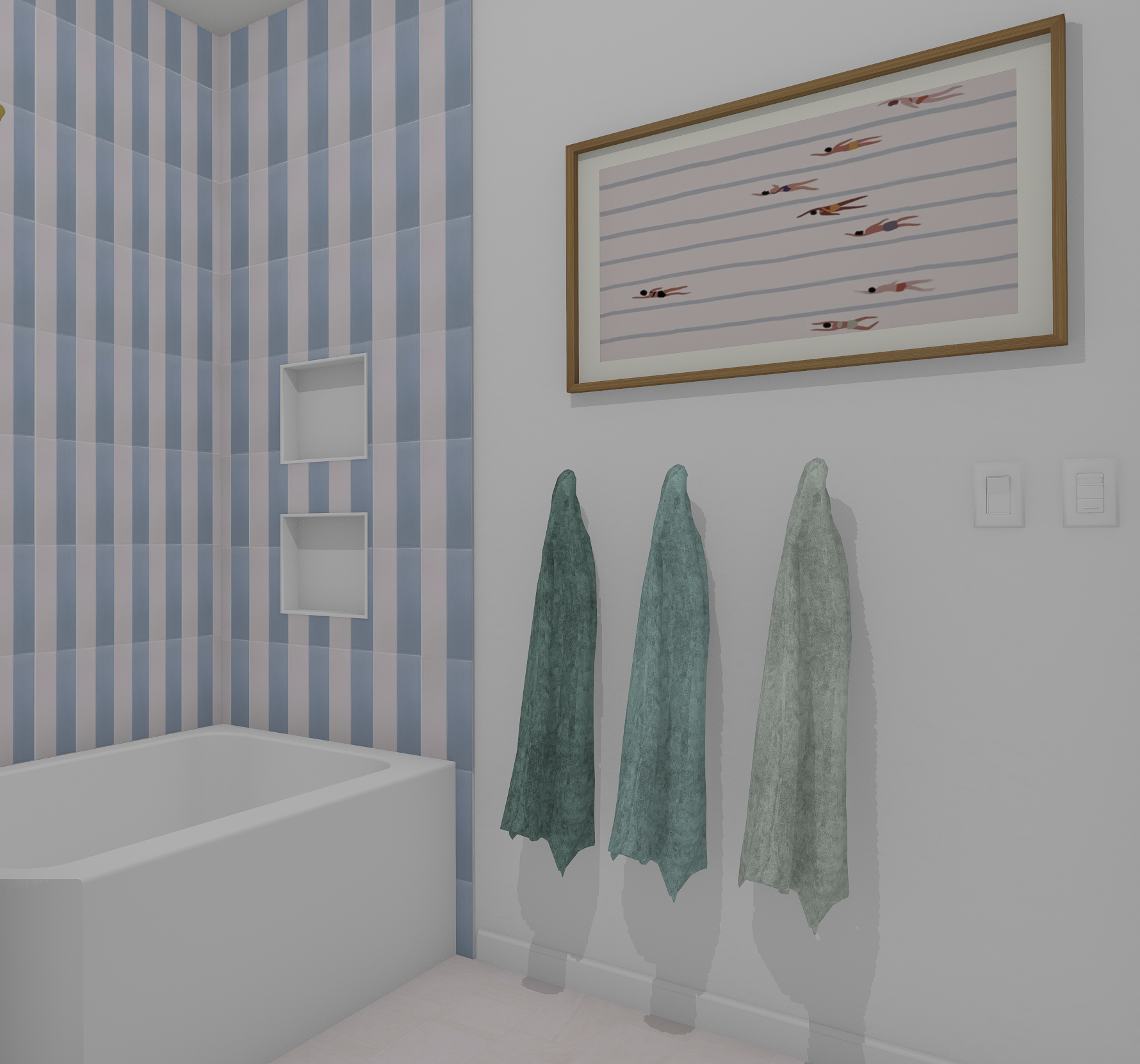 make this rendering look like a real photograph it is mid day there are no windows in the room door is behind camera
