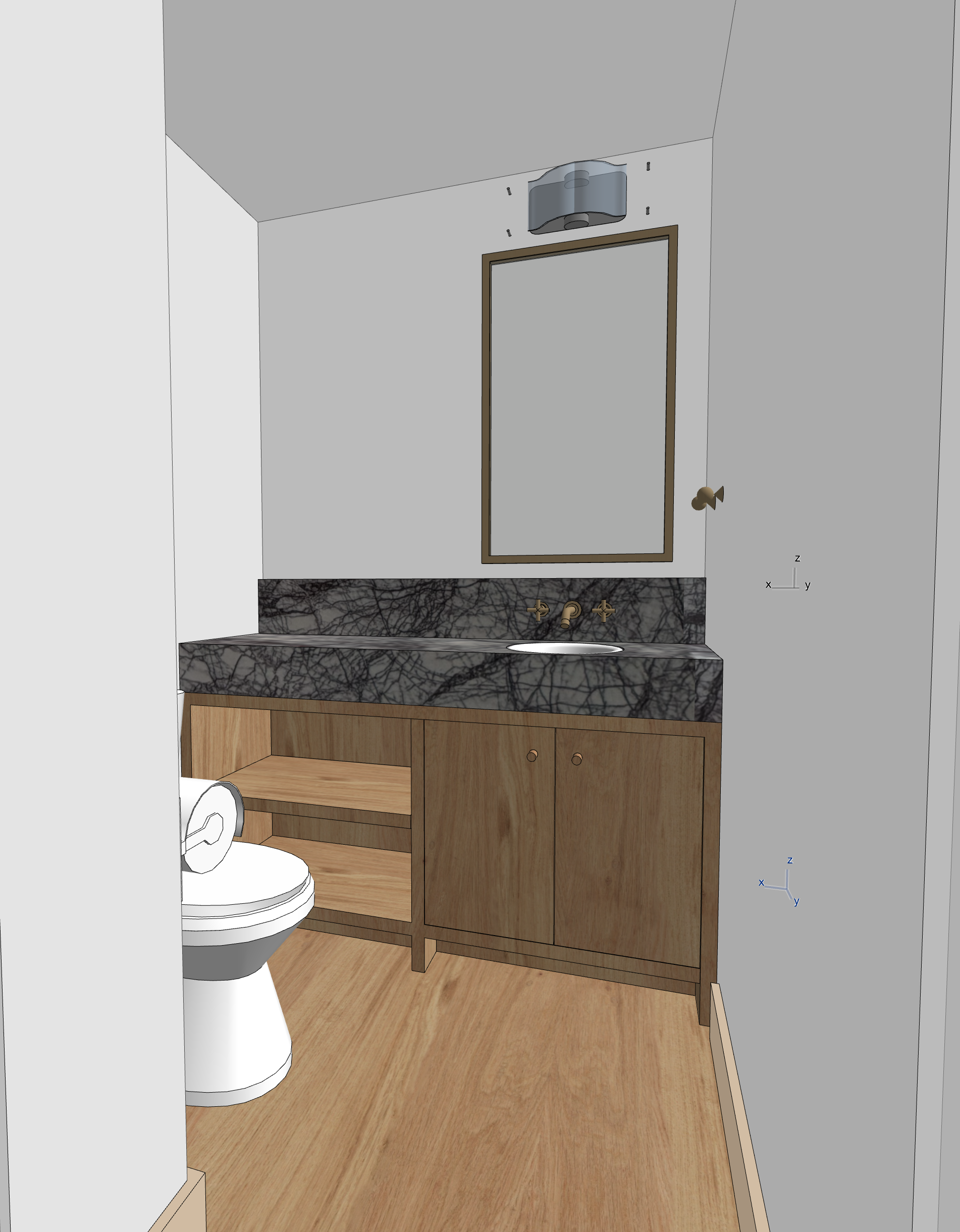 make the walls and ceiling benjamin moore black rasberry remove the light fixture on the wall make the slab lighter with a white background and dark purple veigning