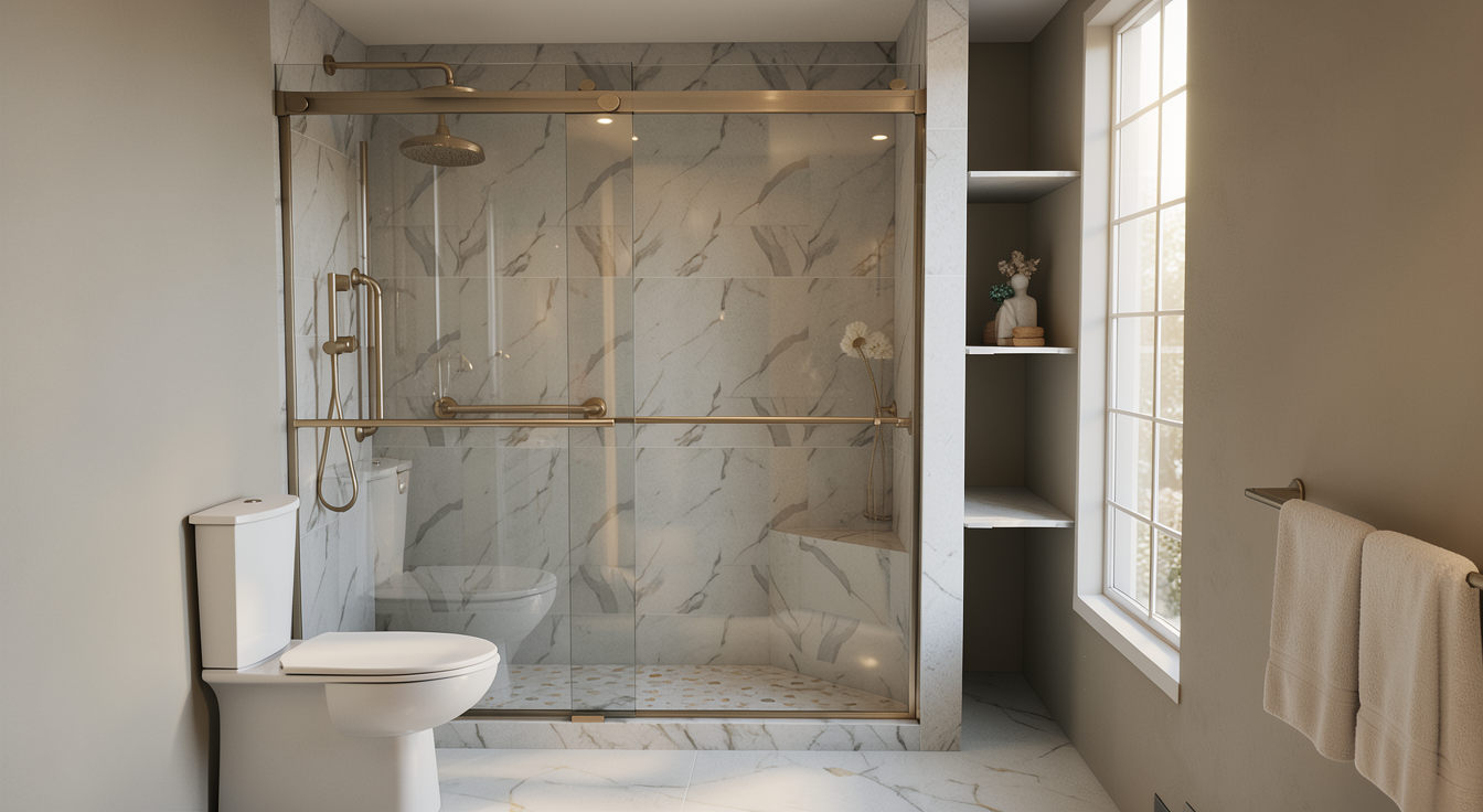 generate a steam sauna and shower in a boutique hotel steam sauna has bench on one level finished with mosaic tiles