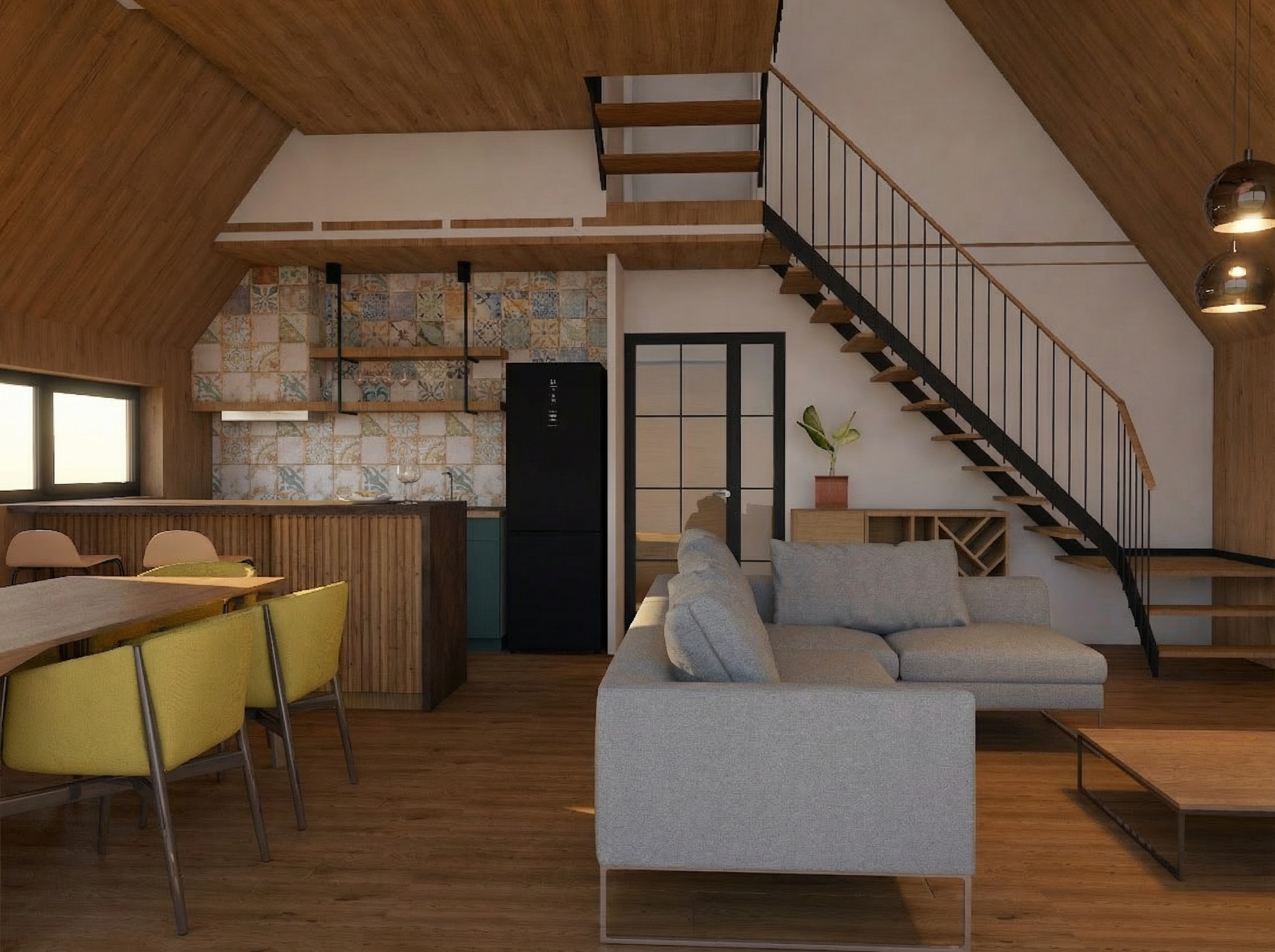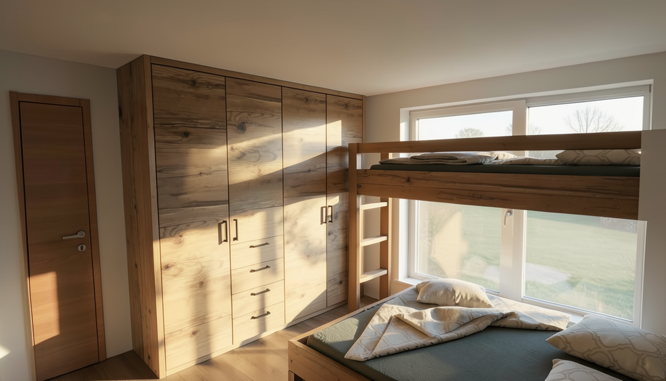 fotorealistisches innenraum foto exakt dieselbe perspektive und kameraposition wie das hochgeladene referenzbild 100 identische raumgeometrie exakt gleiche m belanordnung kein fenster weiches nat rliches tageslicht leicht schr g einfallende sonne sanfte realistische schatten realistische materialien echte holztexturen stoff mit leichten gebrauchsspuren fenster in holz alle m bel in altholz hochwertige oberfl chenreflexionen canon eos r5 35 mm festbrennweite f 2 8 nat rliche farbwiedergabe leicht warme farbstimmung golden hour feeling hyperrealistisch dslr qualit t raw aufnahme 8k aufl sung extrem scharf perfekte tiefensch rfe professionelle architekturfotografie