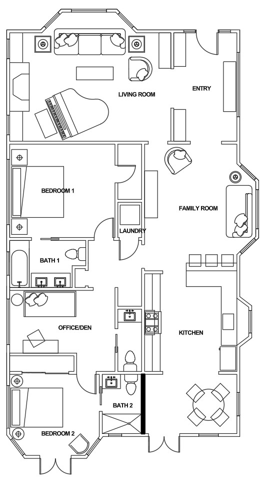 convert this floor plan into a architectural isometric 3d view of a full house show the space from an elevated angle with furniture walls and details visible transitional style home hardwood floors bathroom marble floors quartz for kitchen counters use the same furniture as shows on the plan do not change the orientation of the floorplan