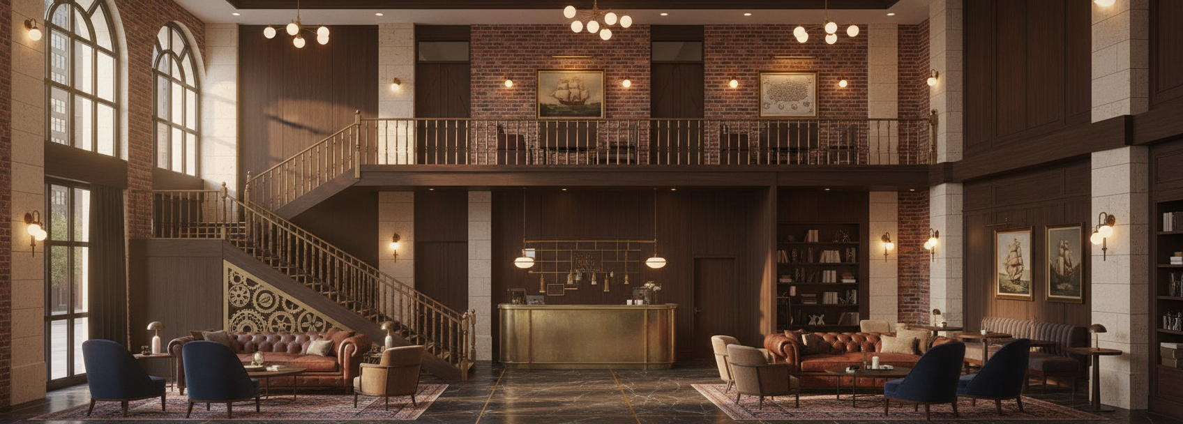 2 story research facility perched off cliff floor to ceiling windows framed with black steel the exterior walls are metal panels the roof is black corrugated metal warm light emits from the inside the interior floors are polished concrete off in the distance there are cloudy blue skies and mountains because its so high up fog can be seen below and behinf the building is a forest
