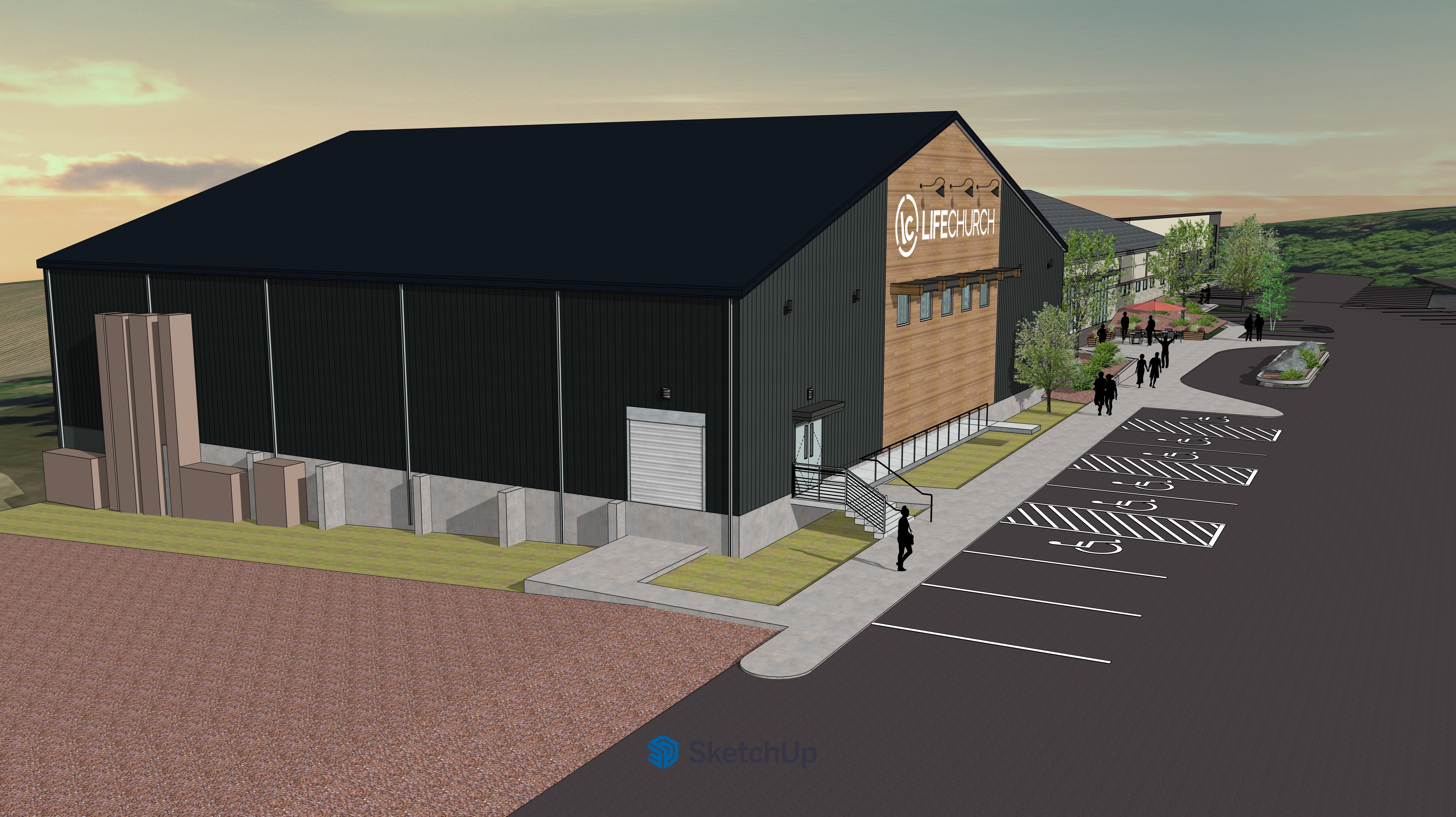 show at night with lighting on building