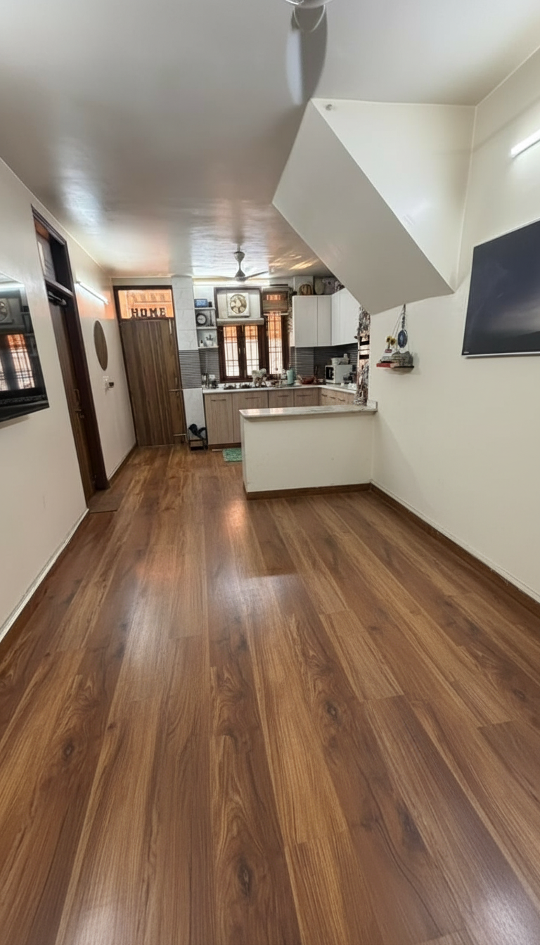 the wall cabinets are made of fluted oak like the backsplash of the kitchen island can you make me a night view with the led lights on under the first row of cabinets and under the second row illuminating the countertop