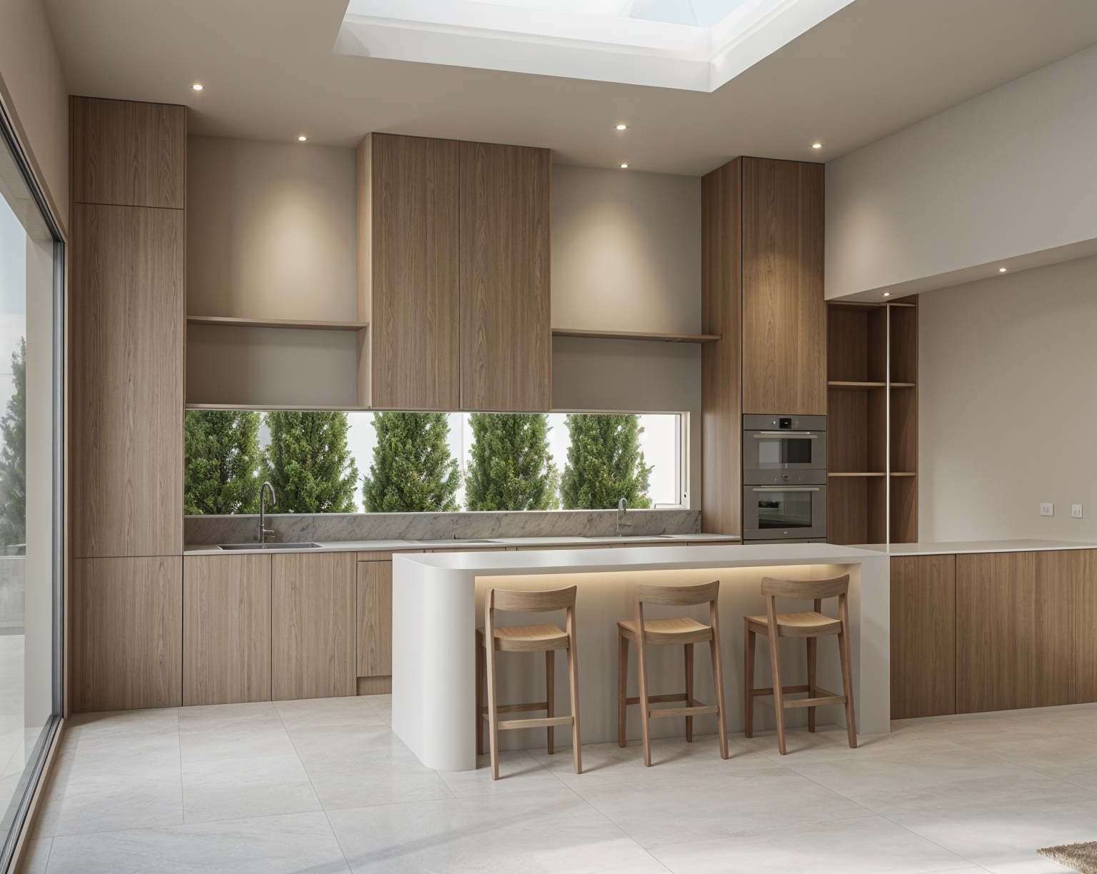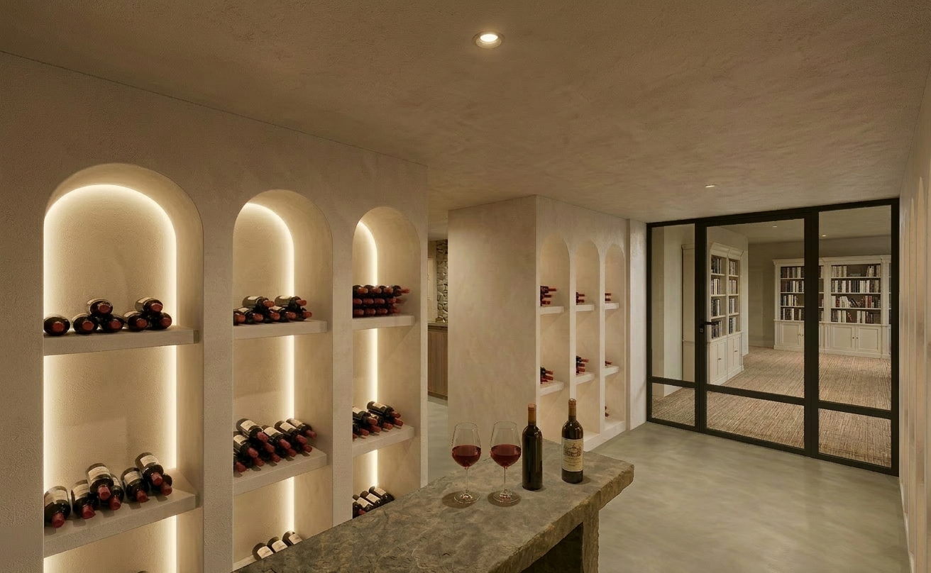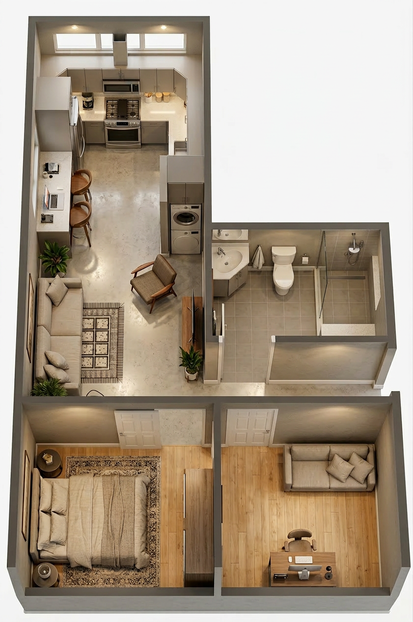 transform the provided elevation into a hyper realistic interior photograph that is indistinguishable from a real professionally shot interior design photograph this must read as a real space captured by a camera not a rendering not a visualization not architectural cg not concept art and not an illustration geometry lock non negotiable preserve the exact original geometry layout proportions ceiling details wall depths panel divisions openings doors cabinetry locations millwork dimensions built ins and circulation paths with zero architectural changes nothing may move scale simplify or be reinterpreted geometry must remain absolutely unchanged camera derivation critical derive the camera position height angle and framing strictly from the uploaded elevation eye level interior photography centered or naturally balanced composition 24 35mm interior lens feel no dramatic angles no stylized framing do not reuse or approximate camera framing from any previous image remove all drawing artifacts completely remove all linework cad edges drafting outlines diagrammatic shapes sketch artifacts nothing may appear outlined flat schematic or illustrative the elevation must be visually reinterpreted as a finished real interior photograph material realism rules wood if present smooth solid plank material extremely subtle restrained grain matte or soft satin finish only no graphic patterns no decorative striping no visual noise wood must absorb light gently never glossy or sharp fabric upholstery if present soft compression subtle seams gentle shadowing natural fabric texture no flat color blocks stone slabs if present light natural veining soft organic variation low contrast no symmetry no bold or busy patterns stone must feel heavy and grounded walls fine surface texture slight tonal variation never flat paint edge construction realism all edges corners joints and transitions must be softly broken and physically realistic no razor sharp corners no cgi perfect edges slight construction tolerances only everything must read as fabricated installed and dimensional lighting photographic behavior lighting must behave like real high end interior photography natural daylight only unless otherwise specified realistic light bounce gentle shadow falloff uneven exposure distribution subtle brightness variation across surfaces avoid studio lighting uniform illumination over clean exposure global illumination look slight softness is preferred over sharpness camera image imperfections very important introduce subtle photographic characteristics gentle lens softness micro exposure variation natural contrast roll off mild atmospheric depth primary plane sharp background slightly softer the image must feel captured not generated absolute constraints no creative interpretation no stylization no exaggeration no added or removed elements any deviation from the original elevation geometry or intent is unacceptable negative prompt always include architectural rendering 3d visualization cgi unreal engine octane vray sketchup look flat textures graphic lines outlined edges over sharpened studio lighting concept art illustration ai look plastic materials glossy wood high contrast grain perfect symmetry keep design as shown in the picture