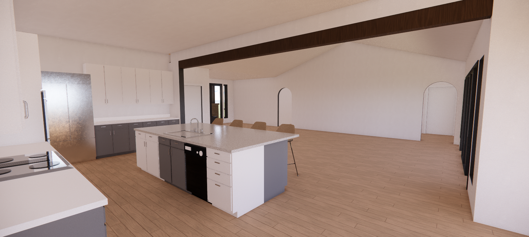 modernist interior shot add fireplace on large empty wall architecture