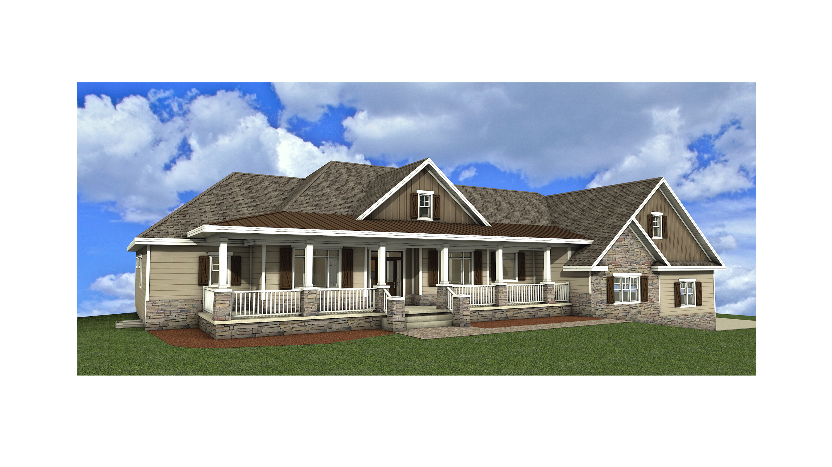 a modern house retain the exact structure colors and window arrangement rooflines siding foundation height and proportions exactly as shown in the reference image integrate into the terrain there are just a few trees mixed hardwoods that are mostly on the sides of the image add cooler afternoon sunlight subtle dappled highlights across the siding and grass create ultra realistic lighting crisp shadows detailed textures in the siding and glass reflections and an overcast sky show only a few lights visible inside render in hyper realistic architectural visualization quality 8k resolution add a driveway tying into the concrete garage door apron make it the fall season add realistic landscape