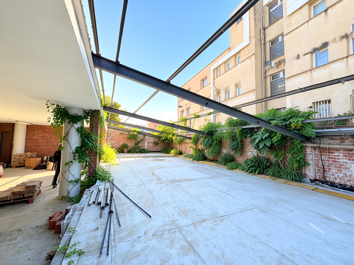 at the terace remove the stone part and add wooden columbs and add more tress
