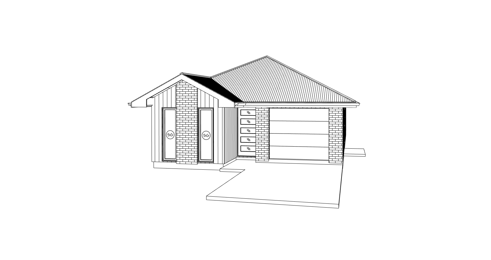 white brick black wood with a driveway and fencing short grass