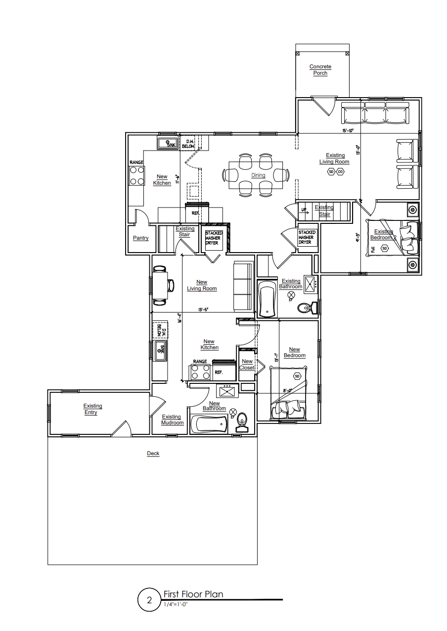 render a modern and stylish first floor house plan with an open concept layout use a warm neutral color palette beige walls light oak wood flooring and white ceilings the kitchen features sleek white cabinets and a dark granite countertop the dining area has a wooden table with cream colored chairs the living room includes a cozy gray sectional sofa with blue accent pillows and a glass coffee table add indoor plants for a fresh atmosphere large windows bring in natural light creating an inviting and airy sensation the overall mood is comfortable contemporary and elegant architecture