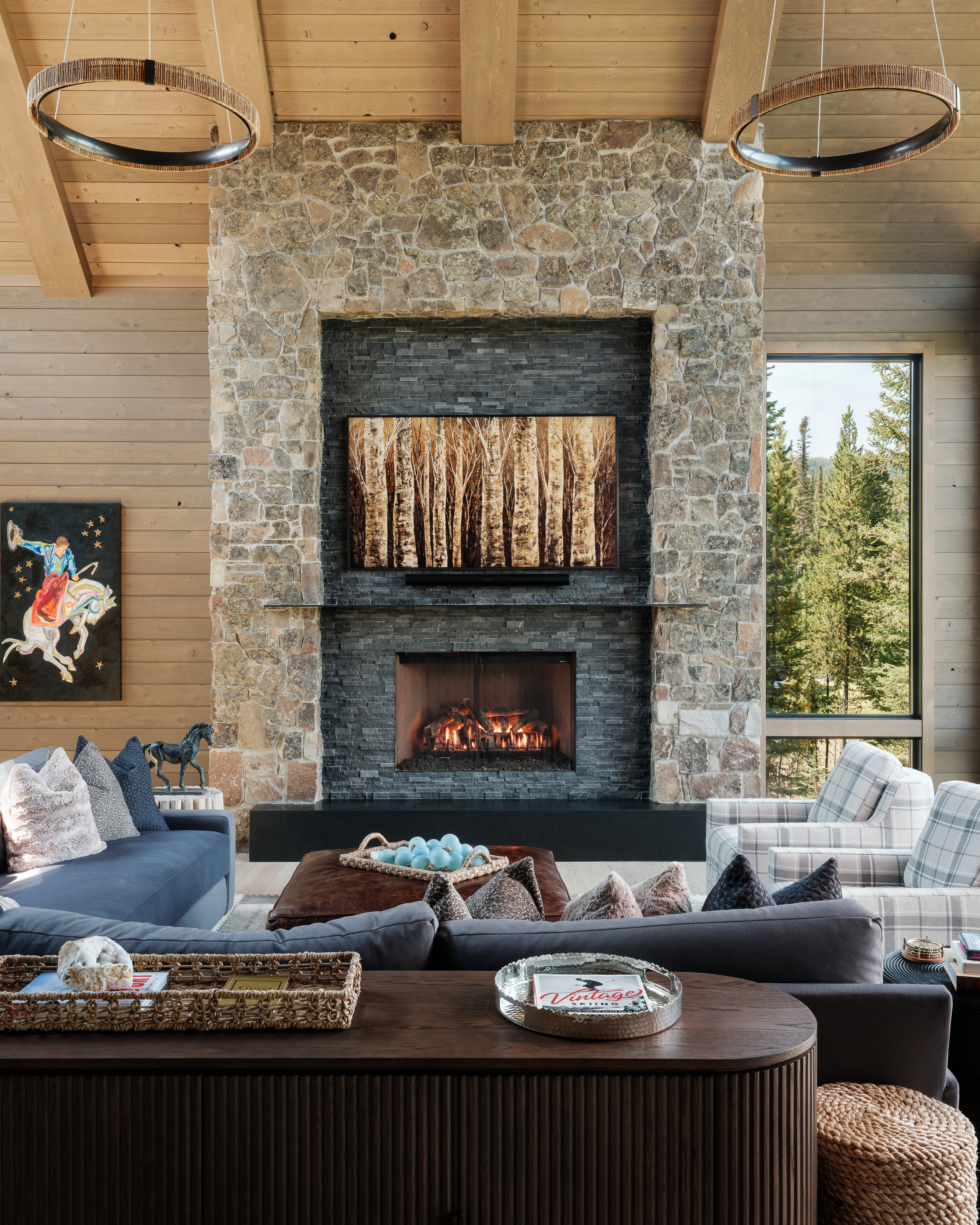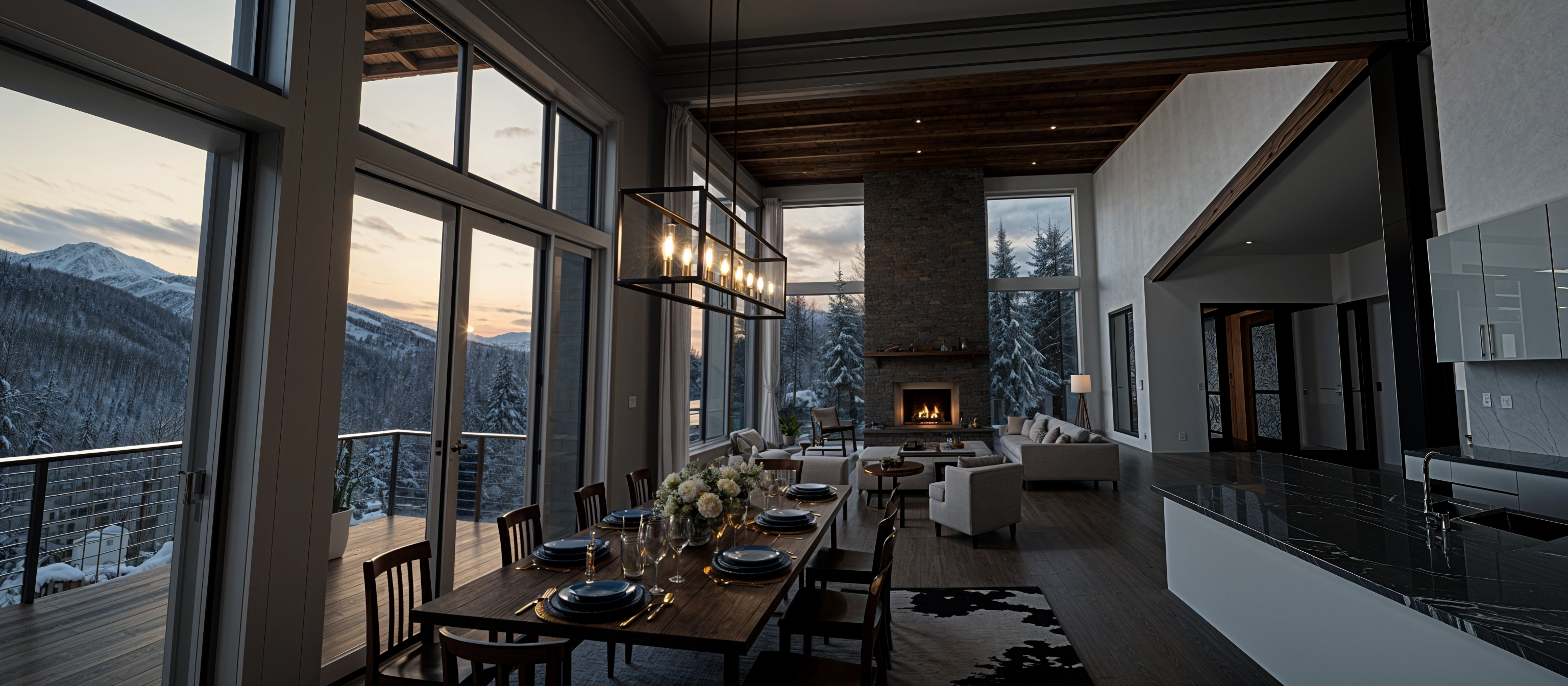 interior shot use forms and background of the first image with the color pallet and furnishings from the mood board