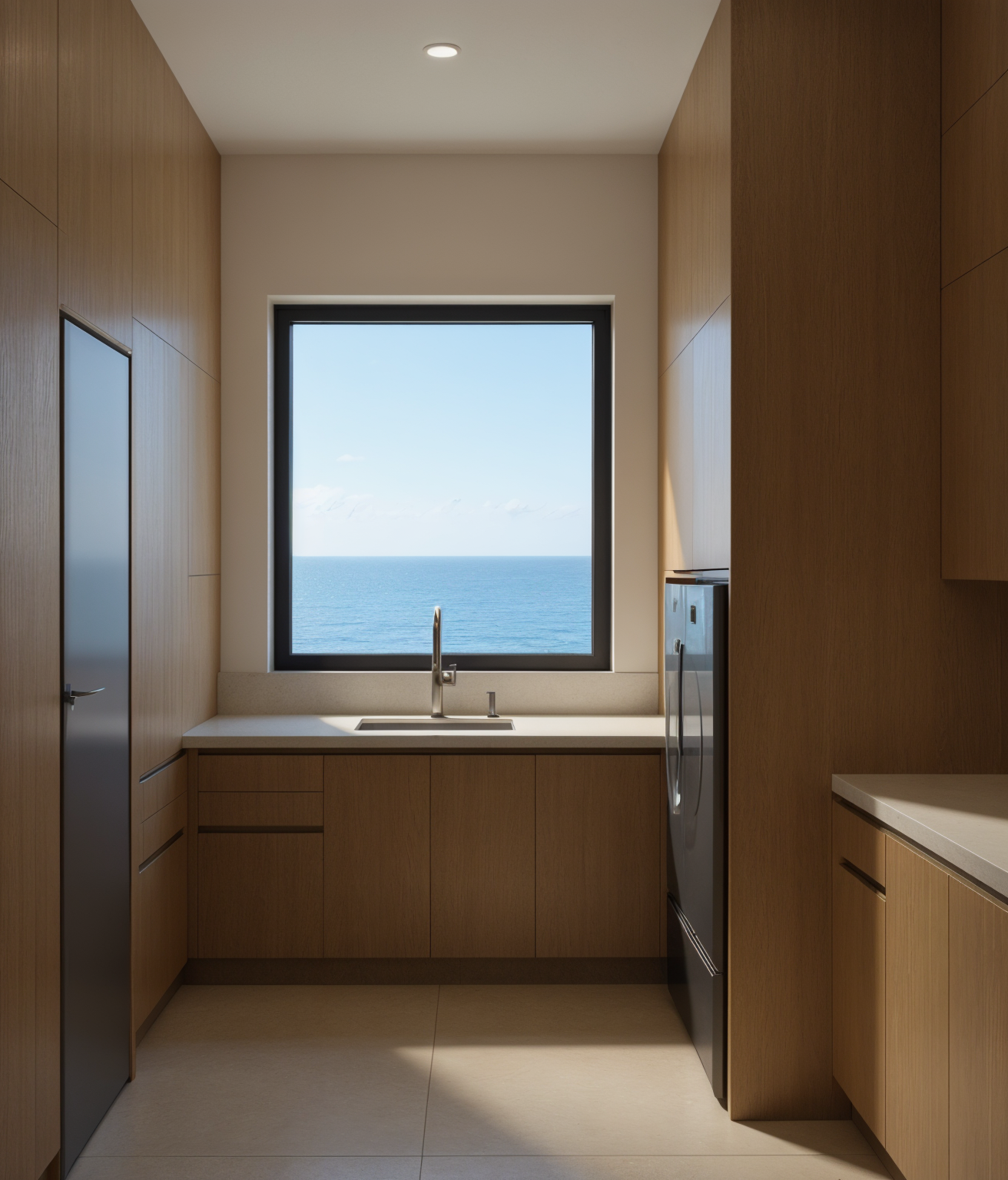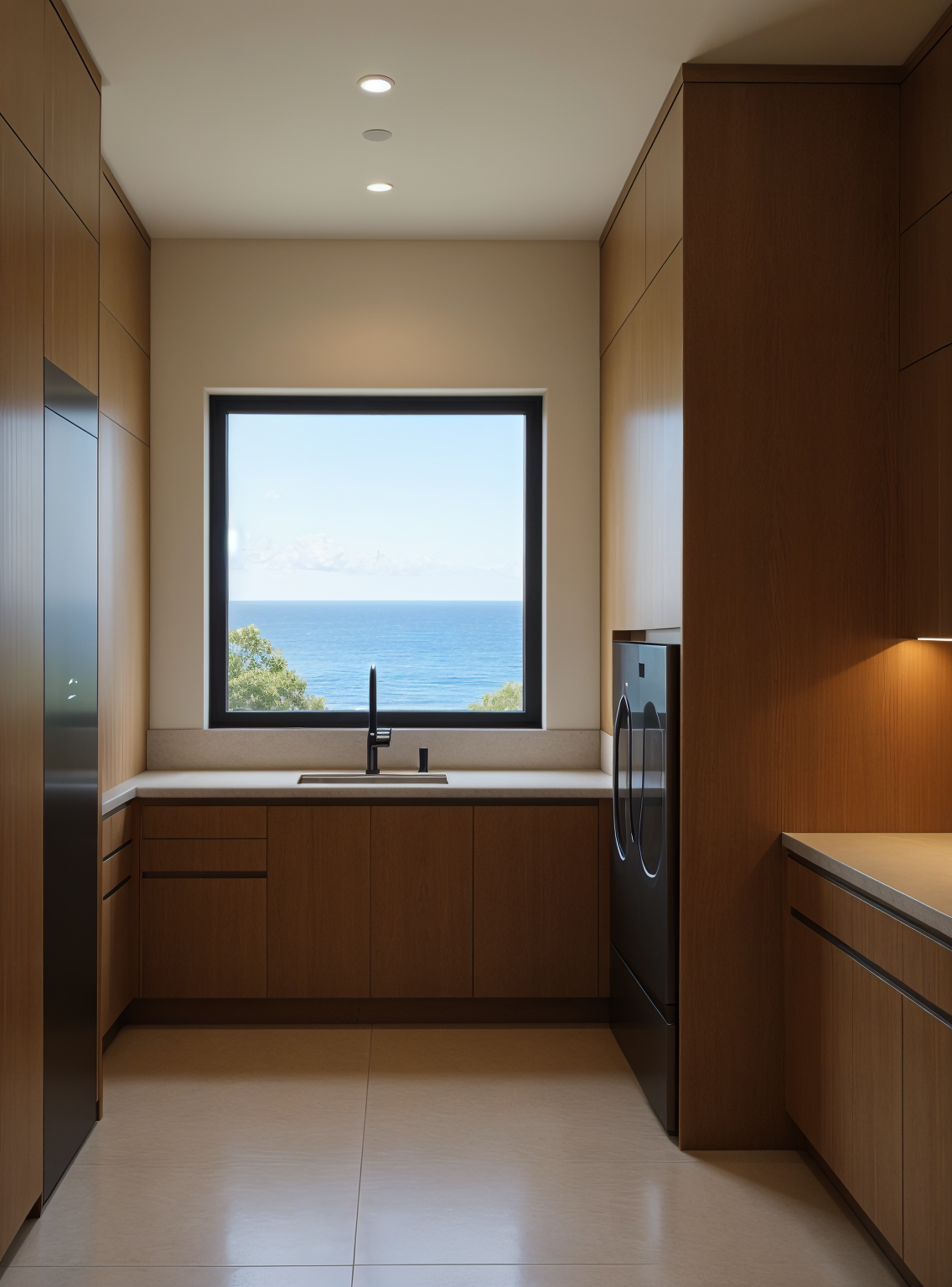 render this image bit replace the wall cladding with clean timber oak panels architecture