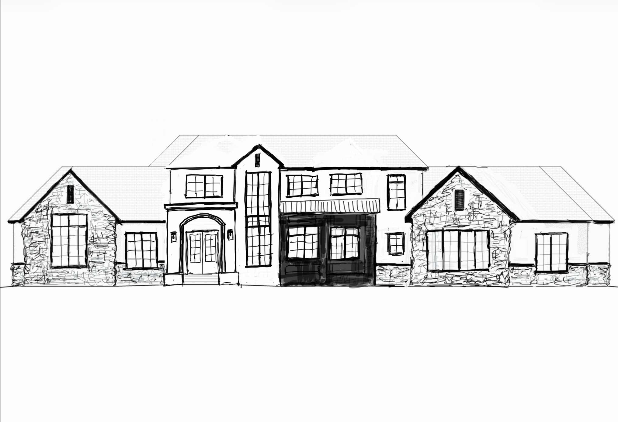 use lots of textures to render this exterior warm natural tones and whites make the roof dark make the landscaping look crisp and clean
