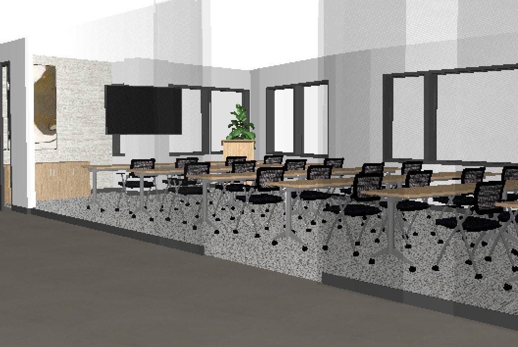 render to be photo realistic keep all design finishes and structure the same make ceiling drywall with recessed can lights view outside should be a field with mountains in the far off distance