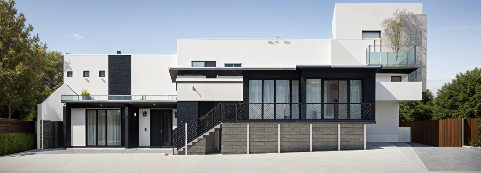 colonial revival exterior shot the exterior is painted white brick the shutters are a light grey the roof is a dark grey slate the opening on the right side is a port a cache architecture