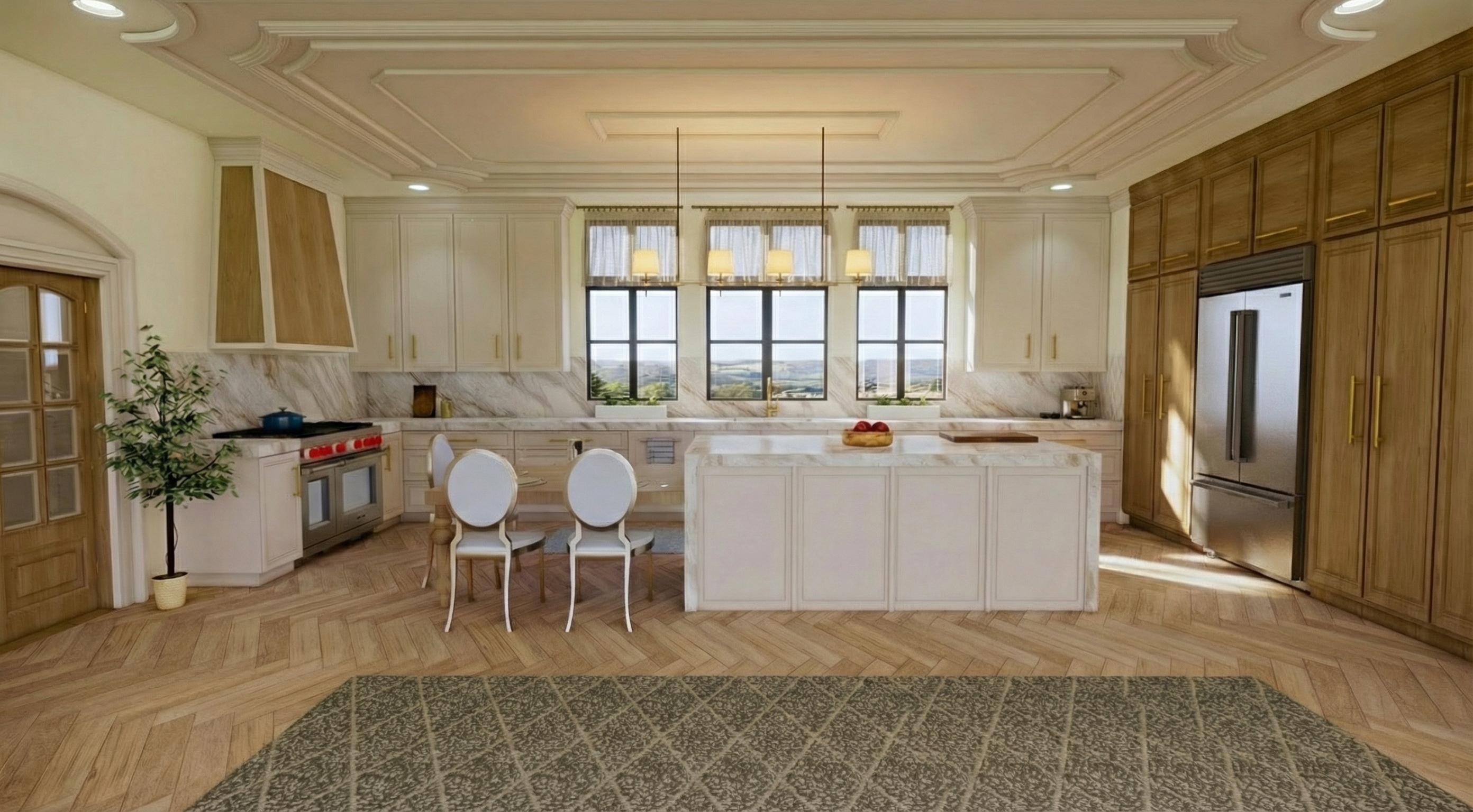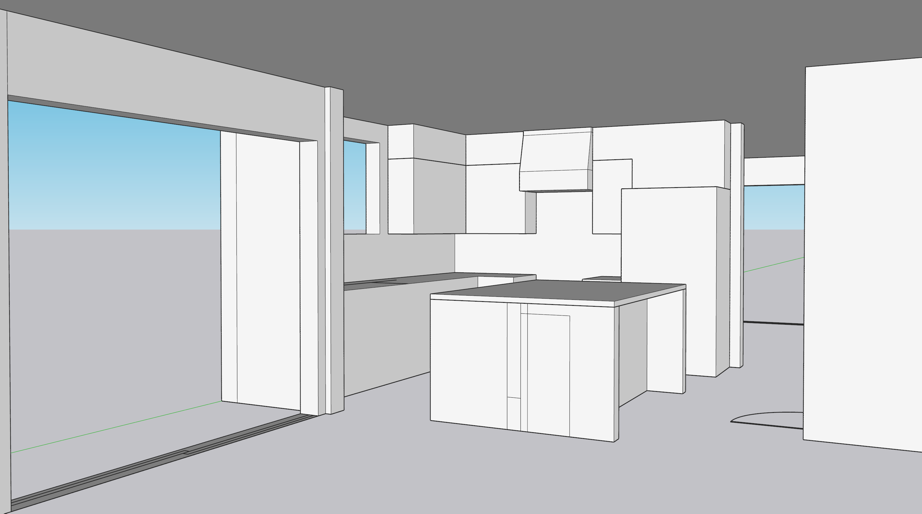 this is a kitchen large opening is a large slider and the smller one is a window help me visualize a modern kitchen that is light and airy