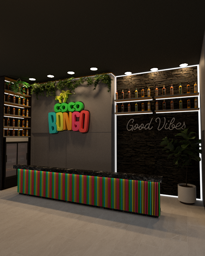 exterior shot colorful drink store elegant vibrant