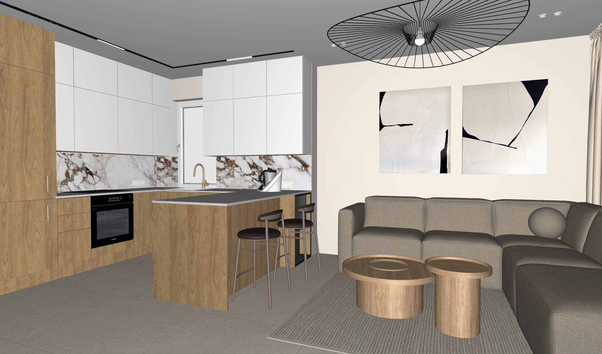 natural delicate and bright warm day light white glossy worktop