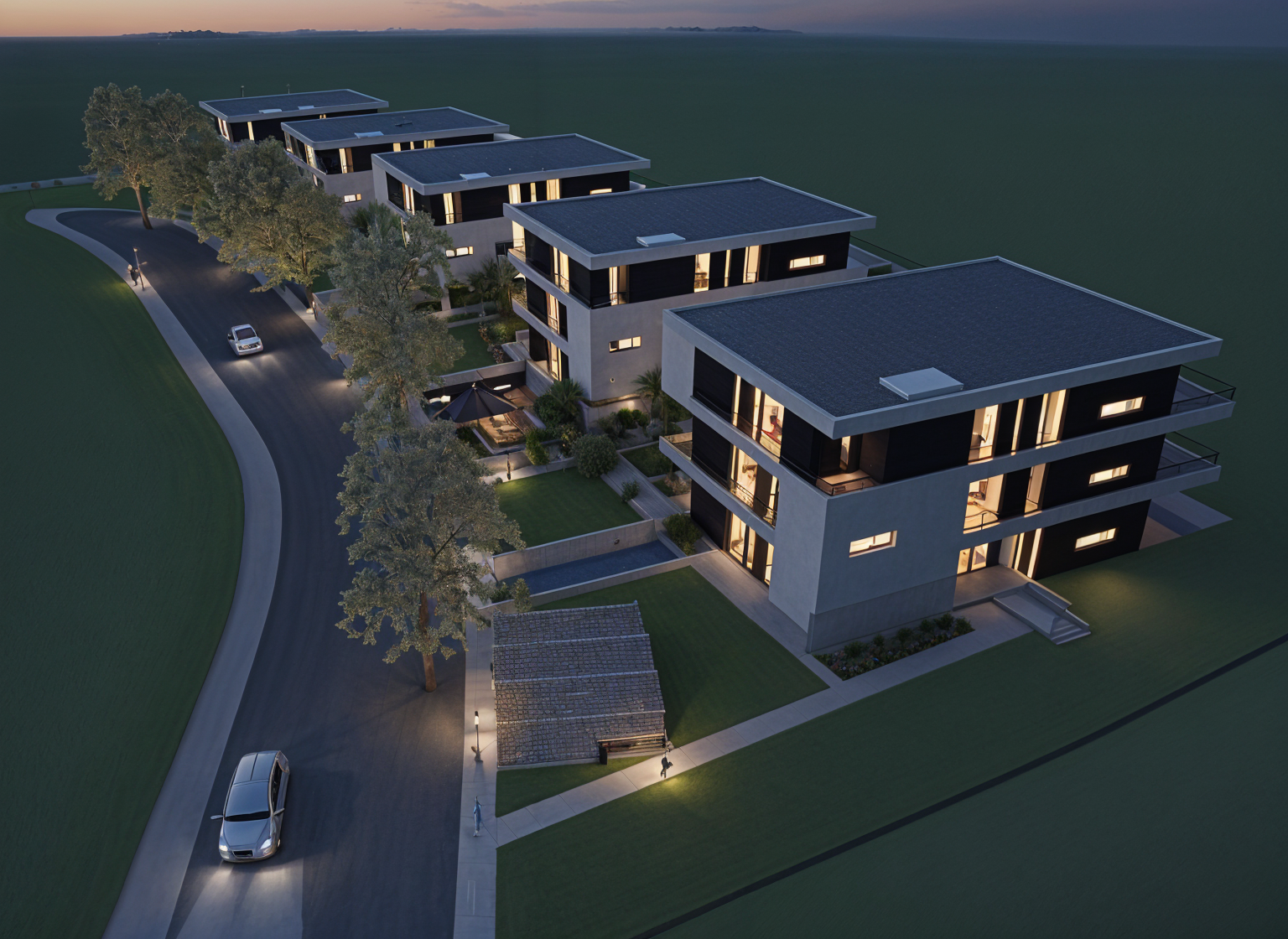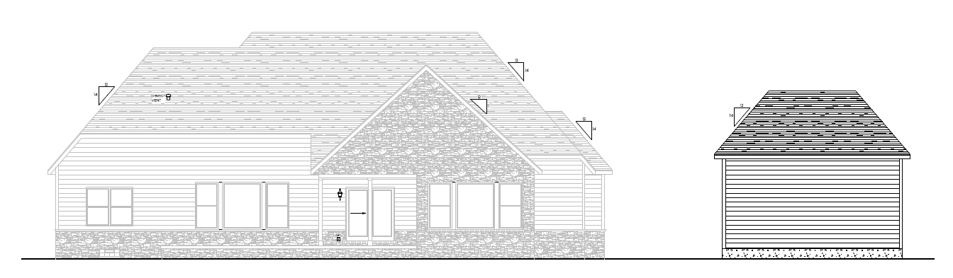 make photorealistic as possible while keeping textures and architectural elements the same as selection add professional landscaping on a lightly wooded neighborhood scene located in uniontown pennsylvania with good lighting use the following colors and materials the home is set 50 feet from the back wall of the detached garage 7 lap siding to be light olive green in color corner boards to be light olive green in color stone veneer to be a coarse grained glacier worn striated stone with large and small slabs intermingle for a cobbled look and multi textured rugged surfaces to create striking shadow lines in varied shades of brown gray sand and pewter with a dark gray brown grout brick accent soldiers and rowlock at windows and gables vents to be black brick with a dark gray brown grout shingles are to be certainteed dimensional shingles in color colonial slate windows to be black in color window trim where shown is black in color sliding glass door to be black in color garage doors are to be raised panel and black in color fascia soffit gutter and downspouts to be black in color stair is to be concrete concrete driveway to the right of the house and to the back of the detached garage