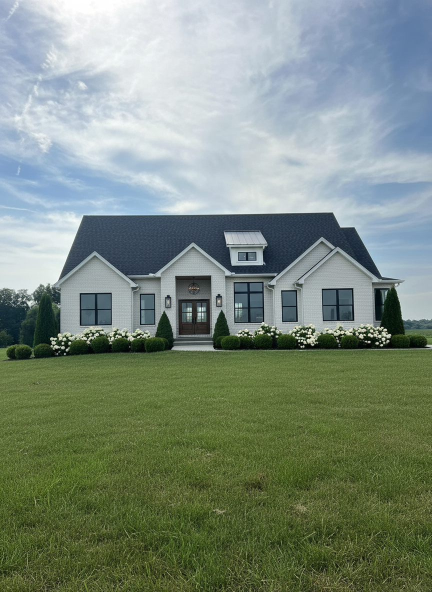 show a stone wainscot on the lower portion of this home keep all other items the same