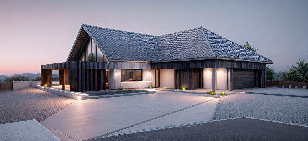 perspective shot ciemny dach wiec ce kule w ogrodzie nowoczesny dom drzewa trawa ziele w ogrodzie dom w g rach