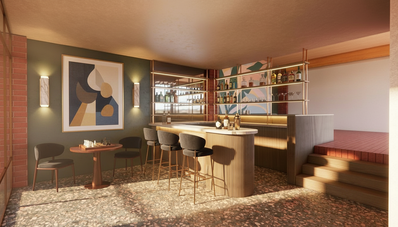 add timber paneling along with a tv on the white wall in the distance don t change anything else