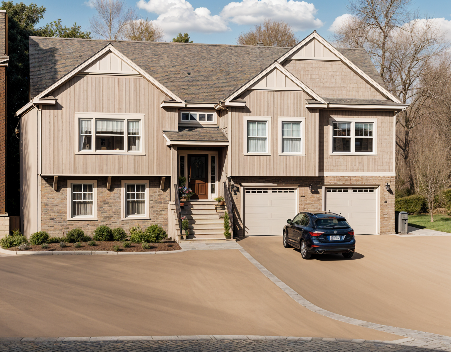 exterior shot use the mood board to create a photo realistic render of the exterior of the house