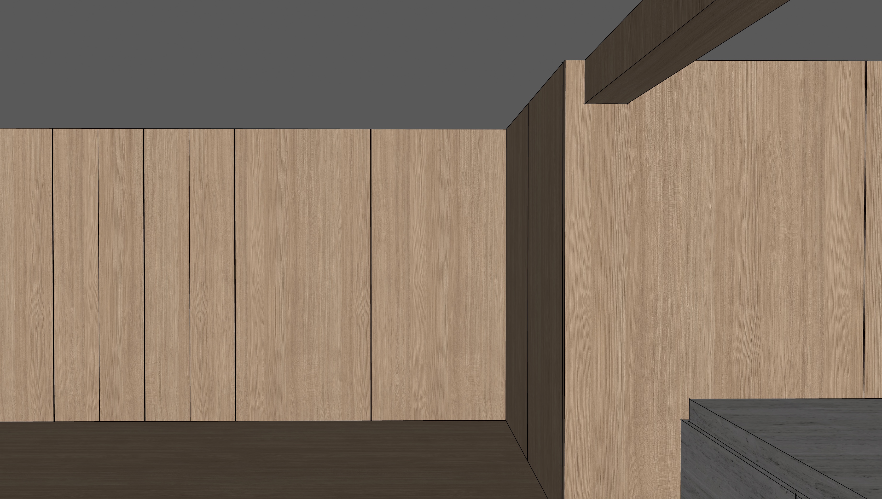 nu dezelfde afbeelding maar de balk in ruw beton niet de wanden enkel de balk aan het plafond