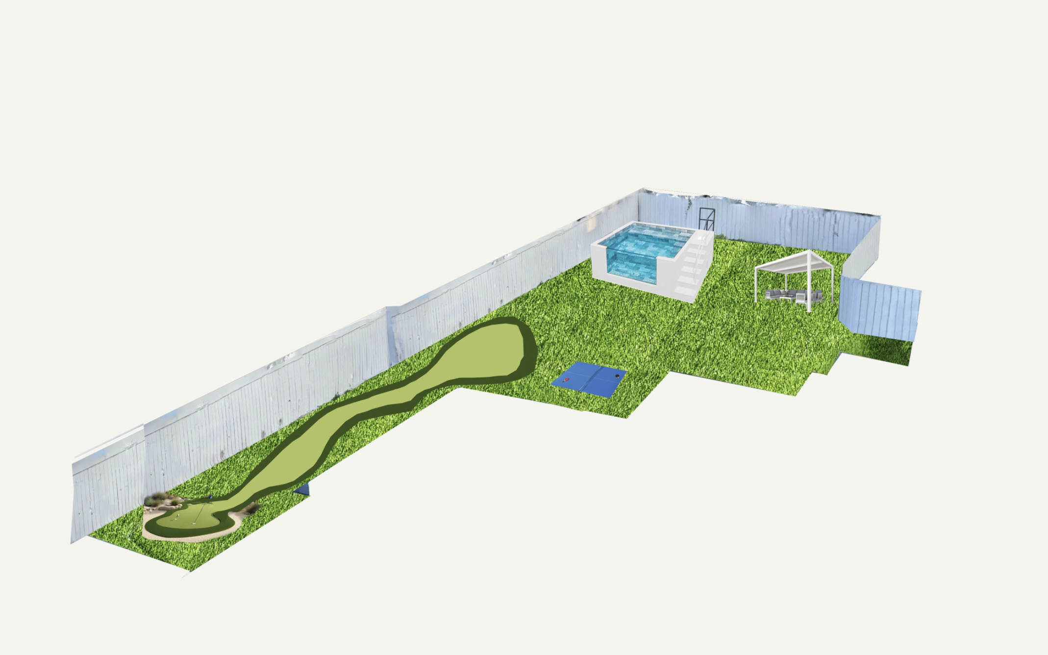 above ground pool pergola golf putt putt ping pong table keep same layout