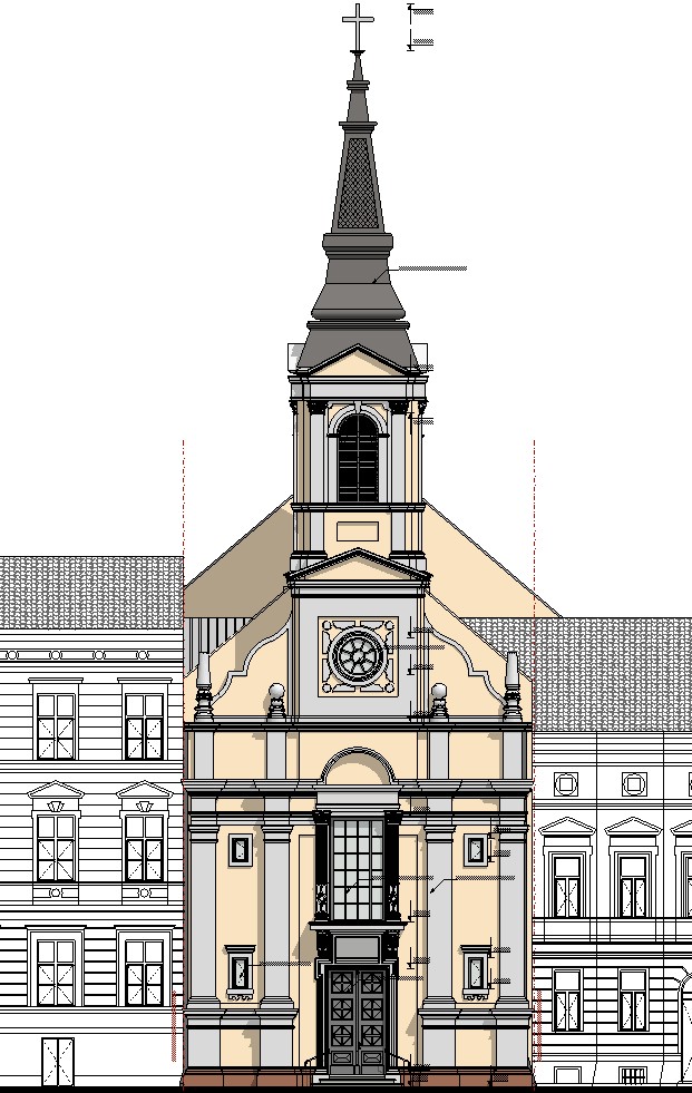 left and right buiding in stucco fassade no vegetation in front just pvement in front of the building cinematic rendering