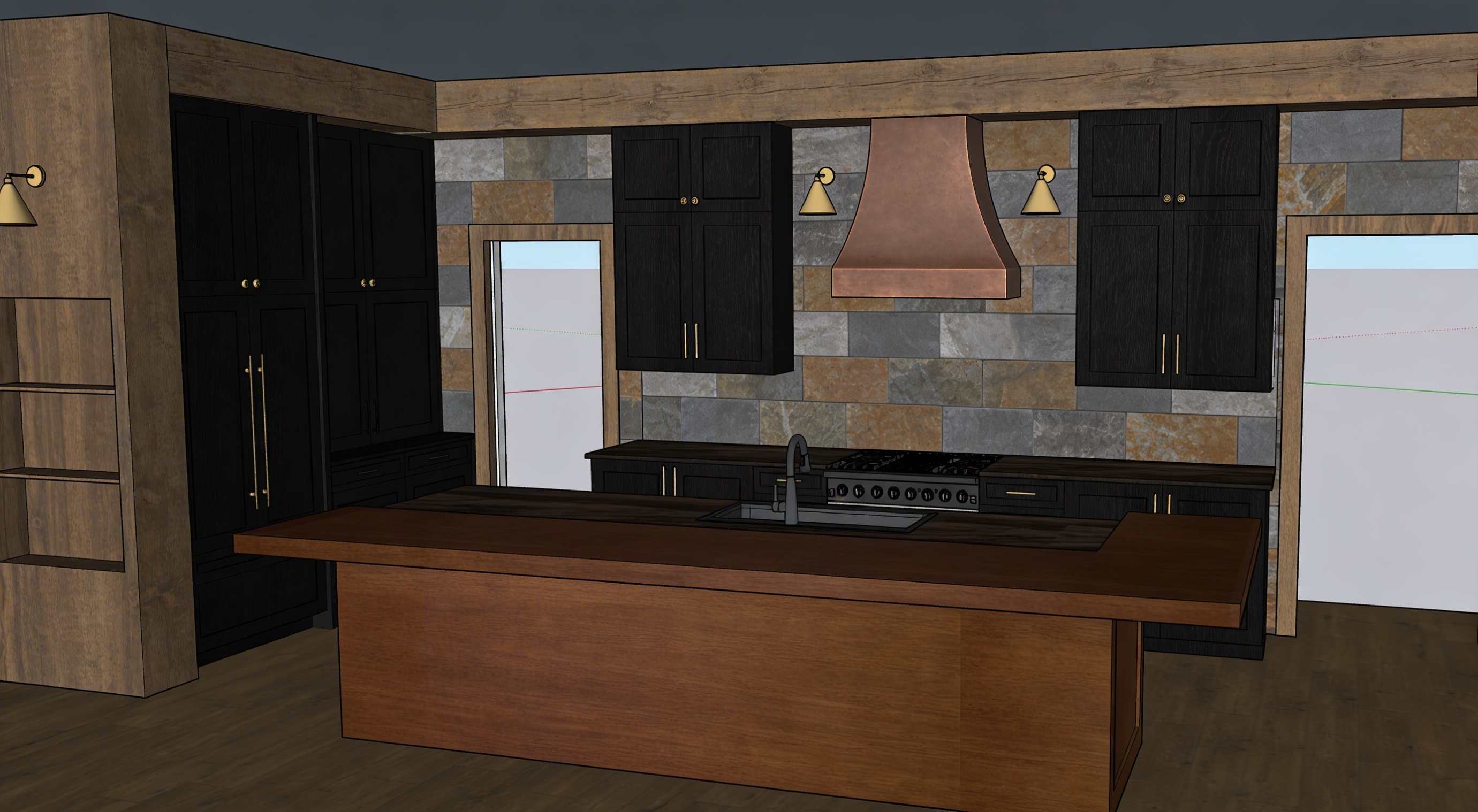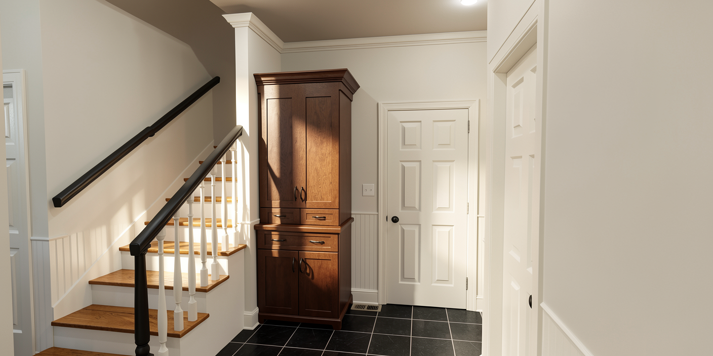 add black arch doors and wainscotting white wall