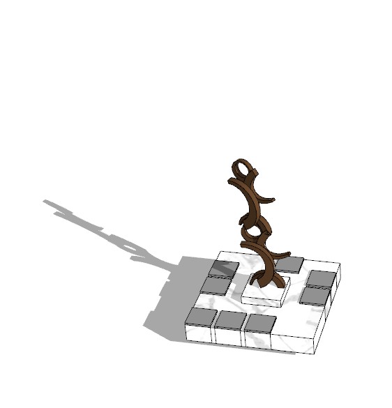 white carrar white marble plinth with grey leather seating pads to sit on with a broze sculpture in the middel
