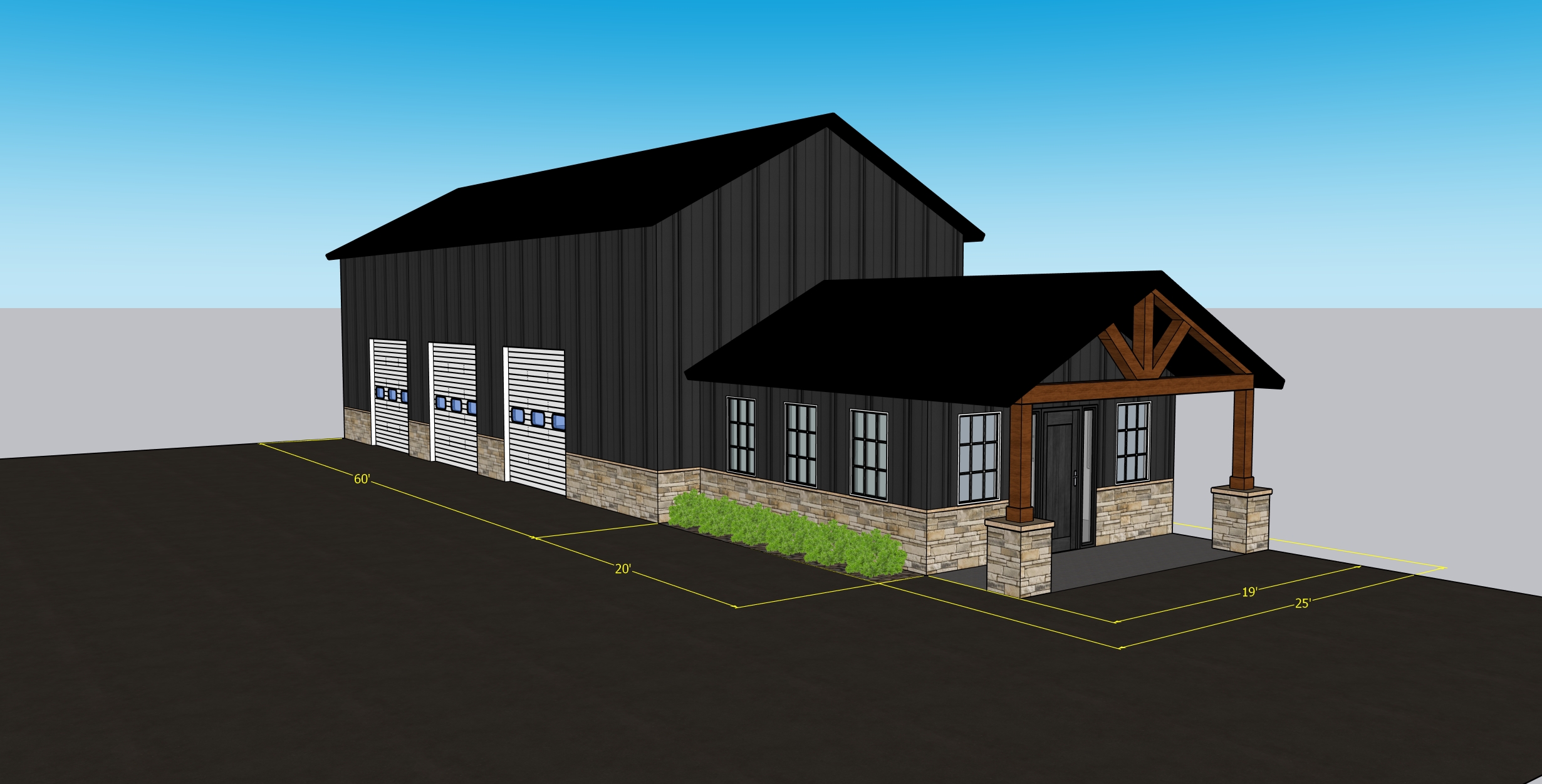create a photorealistic exterior rendering from this sketch up view use realistic materials accurate scale and natural proportions apply soft daylight with realistic shadows global illumination and subtle reflections enhance textures without changing geometry maintain the original camera angle and composition produce a clean professional real world visualization