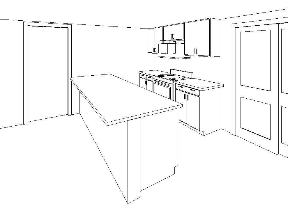 exterior shot the back wall of perspective has a piece of art microwave is above stove sink and cabinets on island are facing the stove ceiling in touching top of cabinets