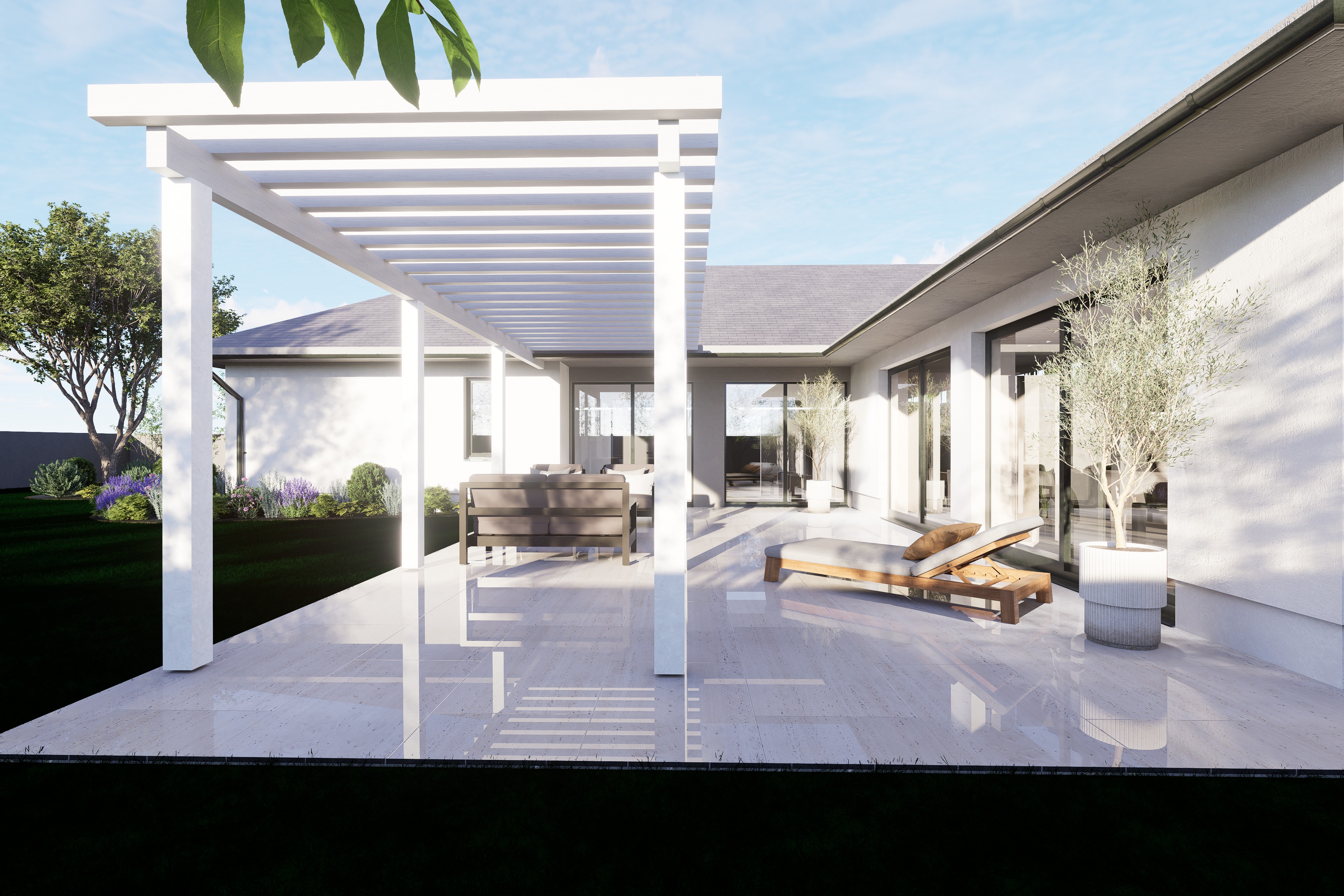 make this render more realistic dont change the materials only a little bit the colors the floor dont be this shiny and reflective the grass could be a little more realistic