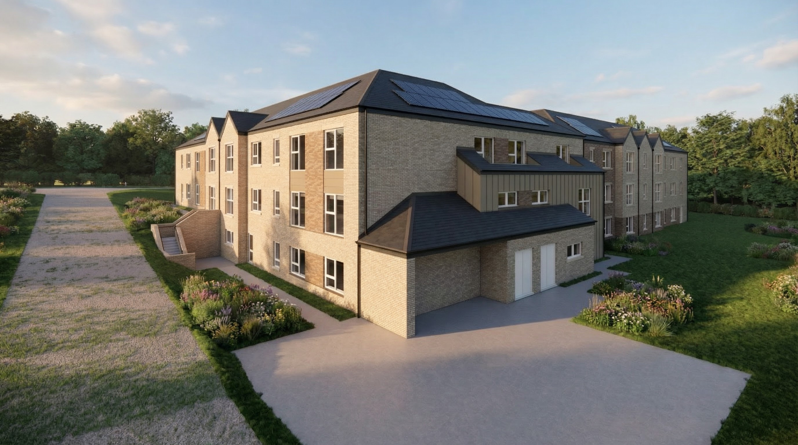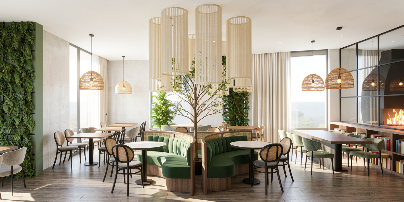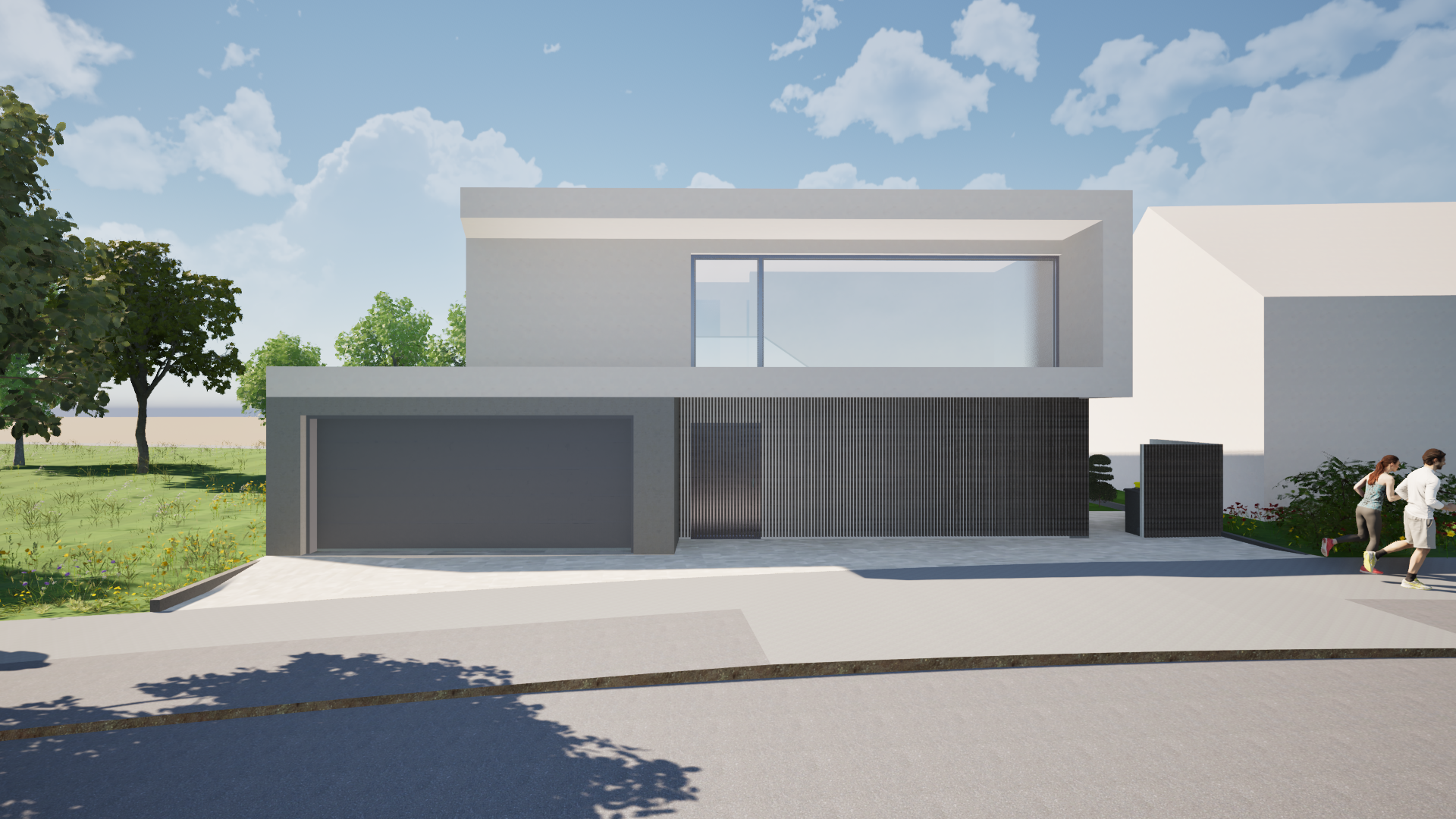 enhance the existing architectural rendering while strictly maintaining the original camera position perspective framing and composition do not alter the geometry proportions or design of the building create a calm high end photorealistic visualization that conveys a refined and professional atmosphere the image should feel natural balanced and realistic as if captured with professional architectural photography use soft natural daylight with realistic global illumination subtle shadows and accurate material reflections improve material quality with highly detailed physically accurate textures concrete glass metal wood etc ensuring correct roughness reflections and depth glass should have realistic transparency and subtle reflections surfaces should show slight natural imperfections to avoid a cgi look refine lighting and color grading to achieve a harmonious warm and inviting mood without becoming dramatic or over stylized avoid exaggerated contrast or artificial effects the atmosphere should feel calm and sophisticated enhance environmental details landscape sky vegetation people if present to support realism while keeping the focus on the architecture add subtle depth of field only if appropriate maintaining sharpness on the building the final result should look like a premium real estate marketing visualization elegant realistic and professionally presented