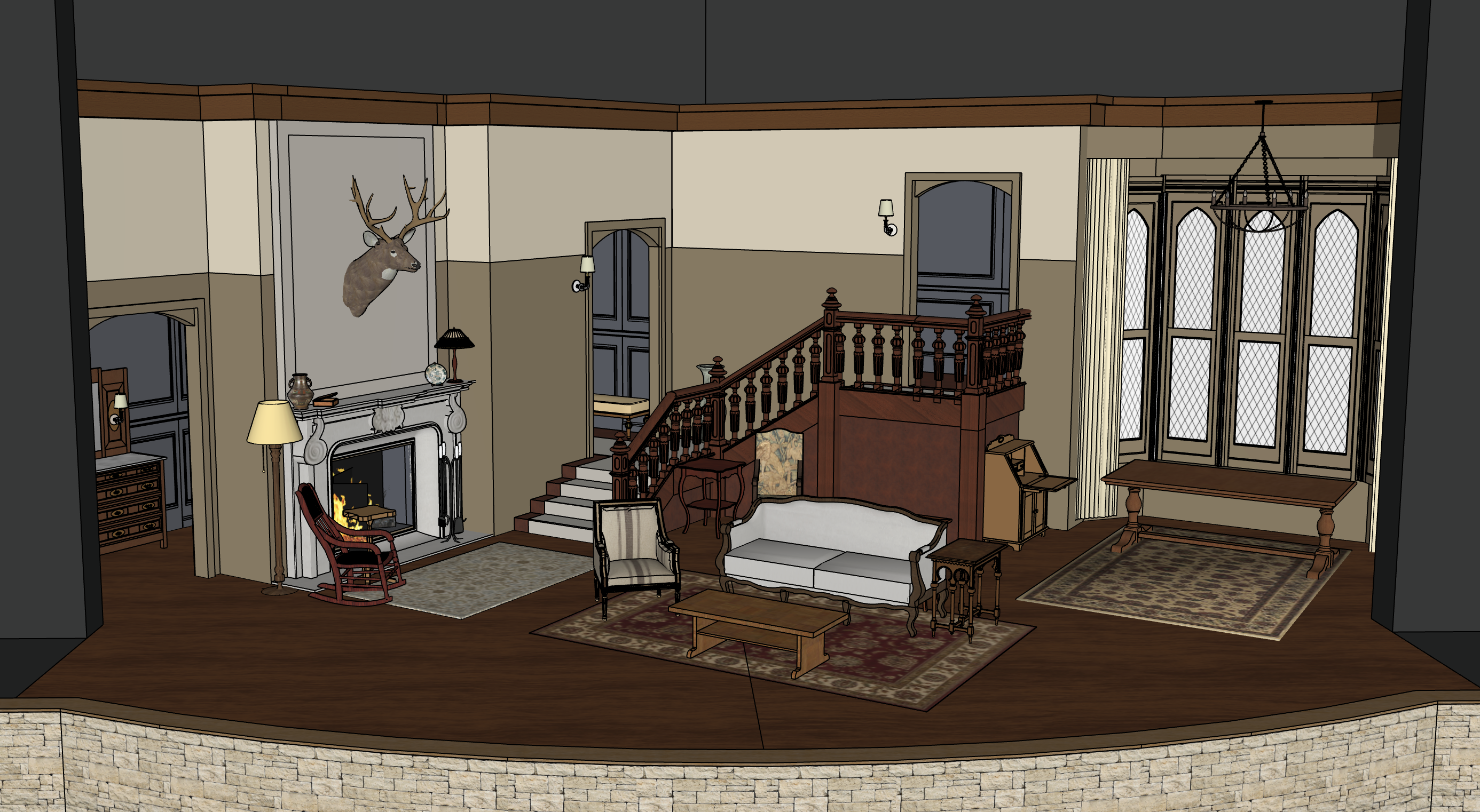 make lower portion of walls look like rustic medieval paneling