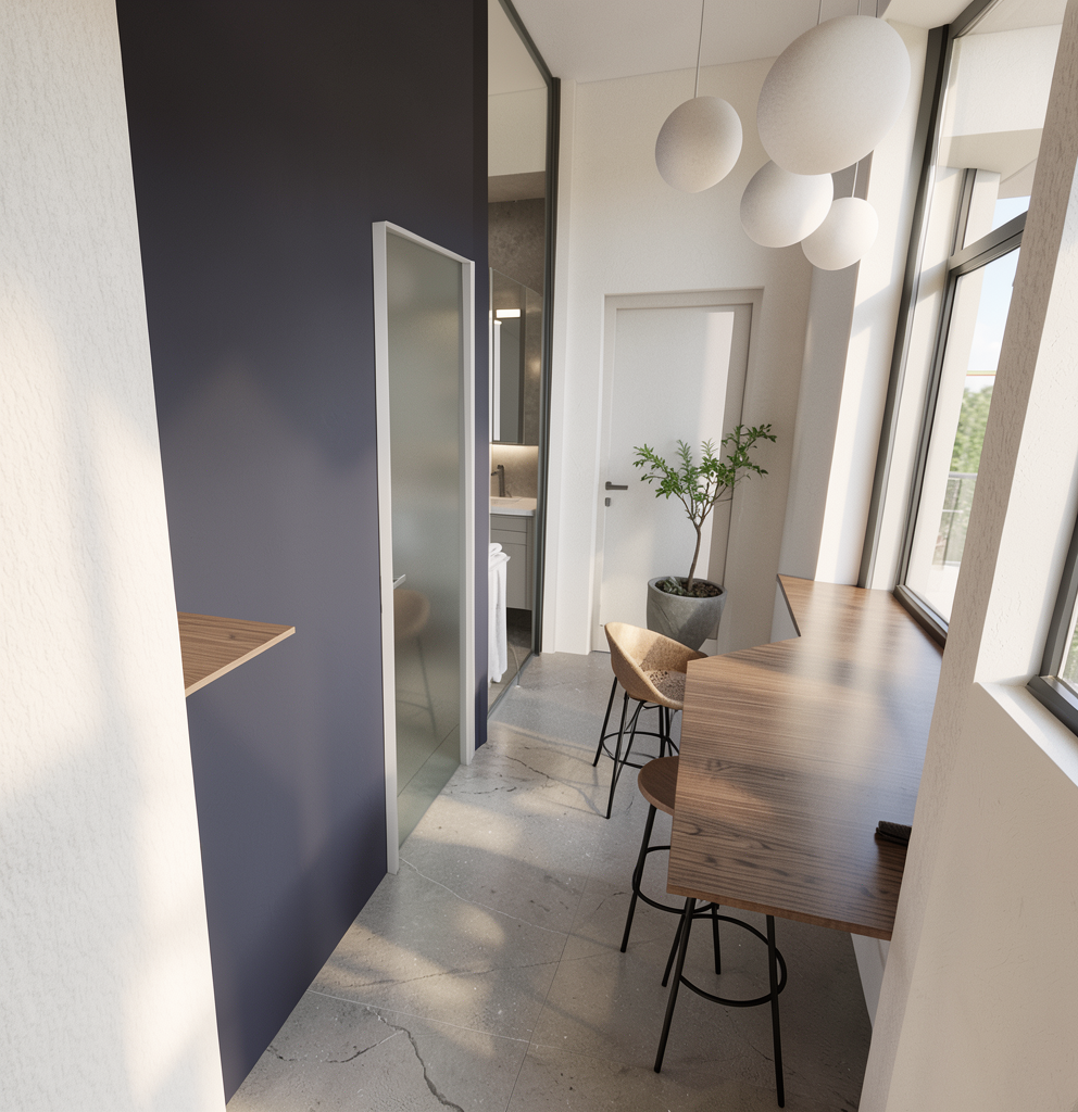 modern interior kitchen with mont in coffee mashine led ligts everywhere soft colors no wood