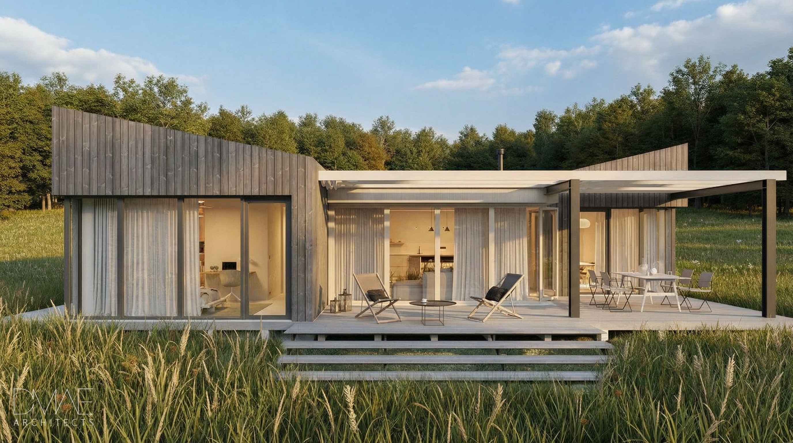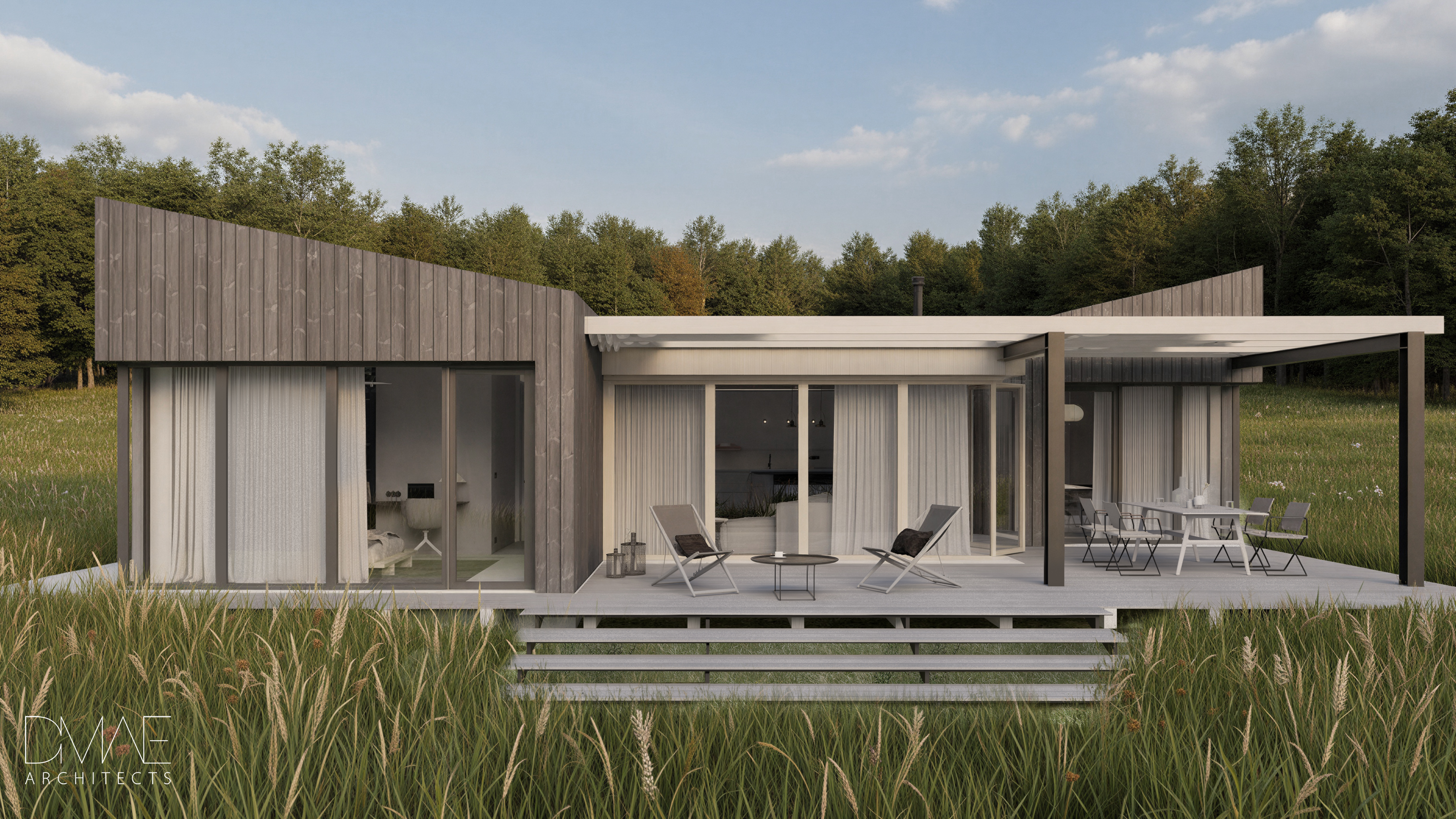 change all the greenery garden with tufts of grass in the background a pine forest house materials preserve