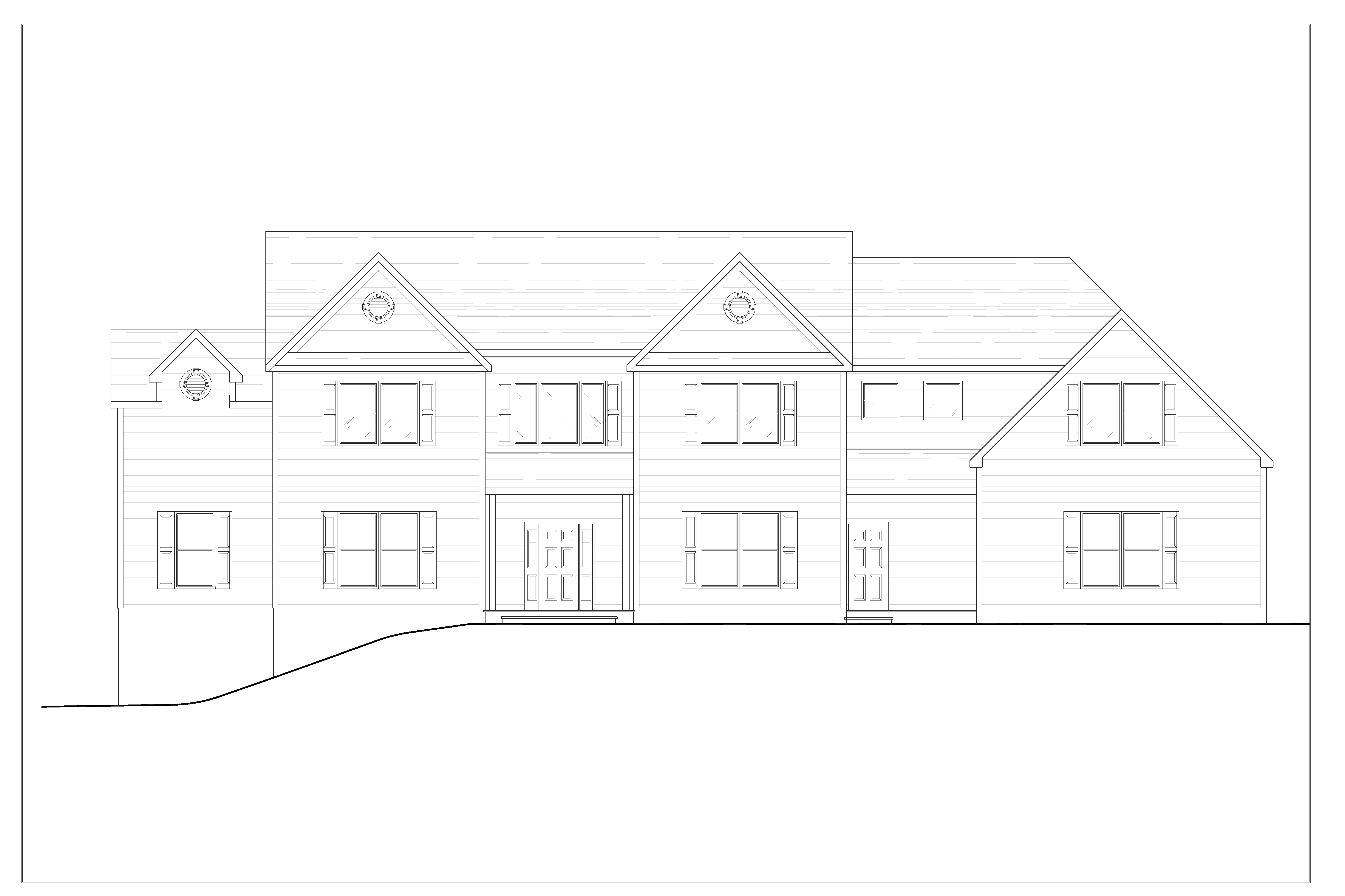 add green grass and a blue sky with clouds the house siding should be white and the roof color should be a dark charcoal color the shutters should be black and the foundation should be poured concrete