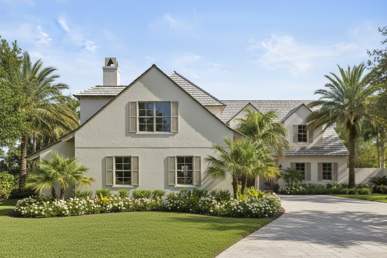 remove text from top of the picture white stucco facade