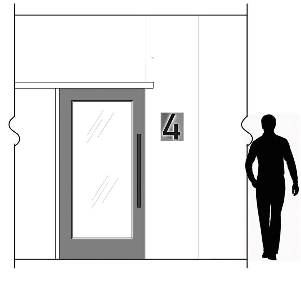 change this into a colored image with a white oak door gold illuminated letter on a black vertical stripe
