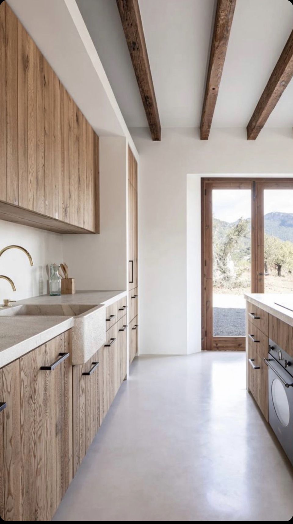 interior shot wooden grey green windows
