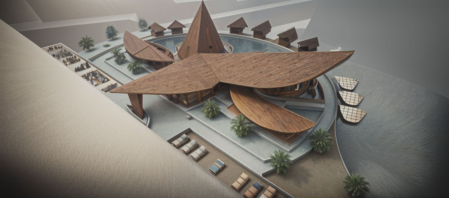 wide angle shot 1 your specialist of making a 3d render realistic 2 thing not to do don t do noting with physical of building don t do noting with roof building 3 things i would like you to do tree around building lake around area like reference roof grey color realistic natural scene building in lake architecture