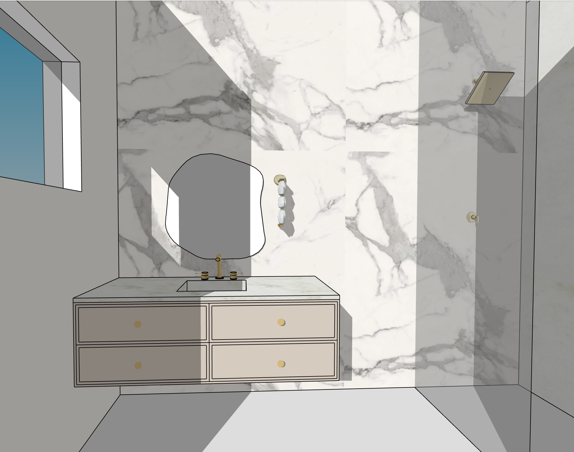 make the base of the vanity a light cashmere beige and make the mirror led